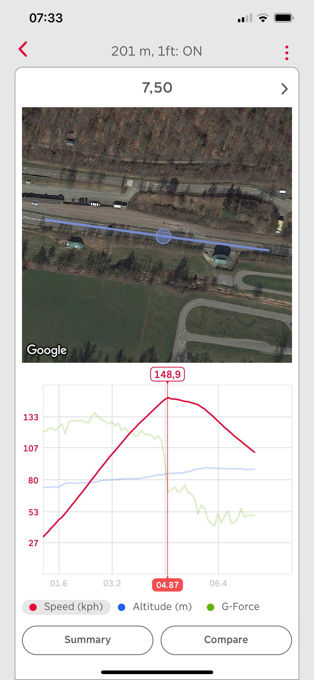 Eigentlich bin ich bei der 1/8 Meile bei 190-200 km/h und hatte mich schon gewundert …