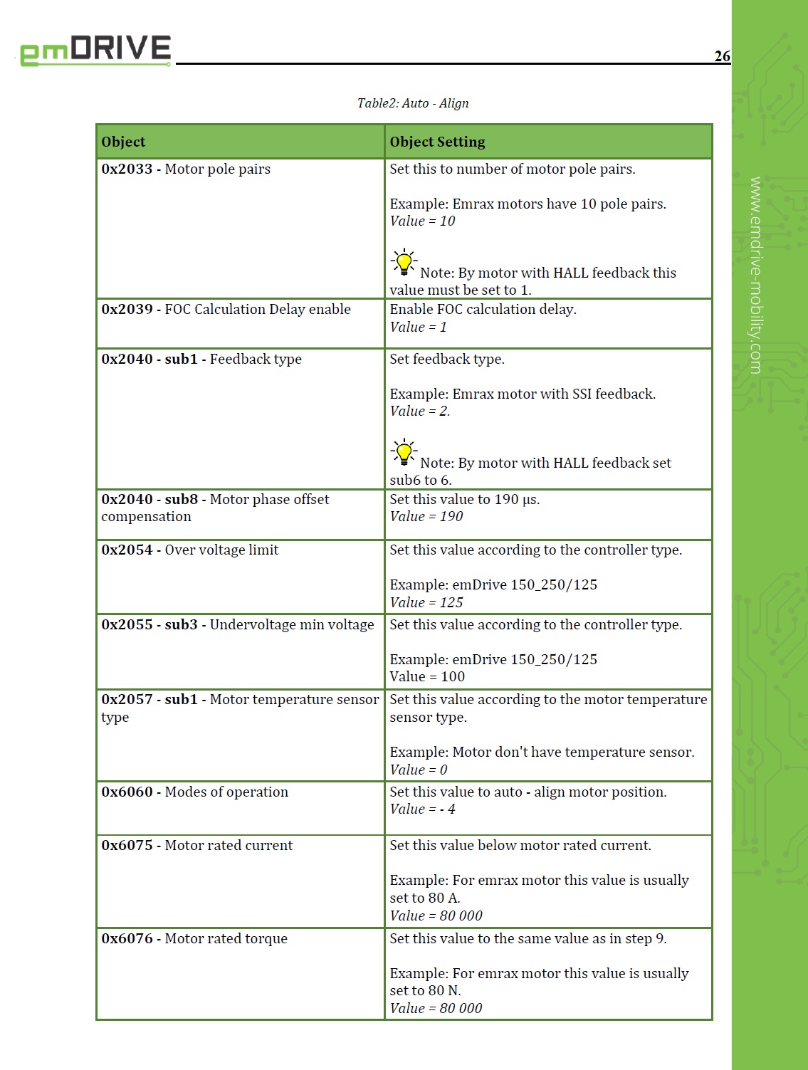 Mein Motor hat 150A rated current, deshalb kan ich auch diesen Wert in 0x6075 und 0x6076 als 150 000 mA eintragen!
