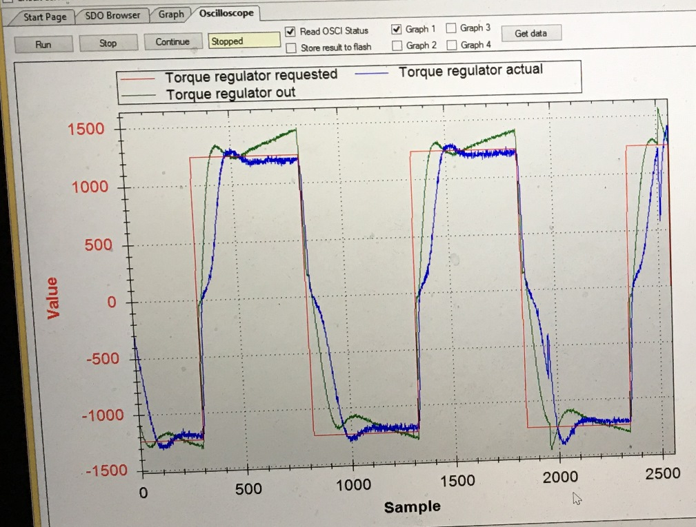 Allerdings ist der "Target torque value out" (grüne Linie) immer mit irgendwelchen Überschwingern versehen und ich bekomme ihn einfach nicht soweit herunter, wie in der Doku empfohlen!