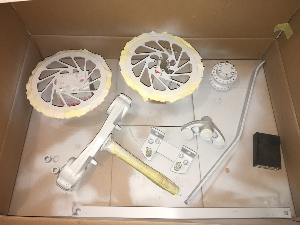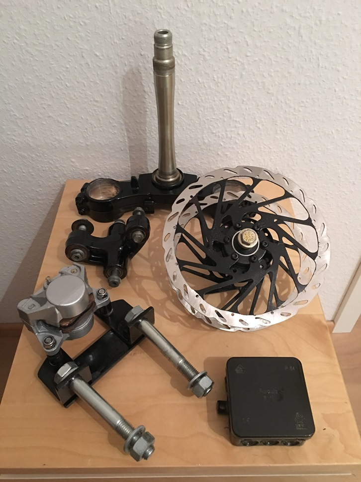 Die China-Ikea-Fußrastenanlage und den neuen Lenker habe ich auch zusammen gebaut.