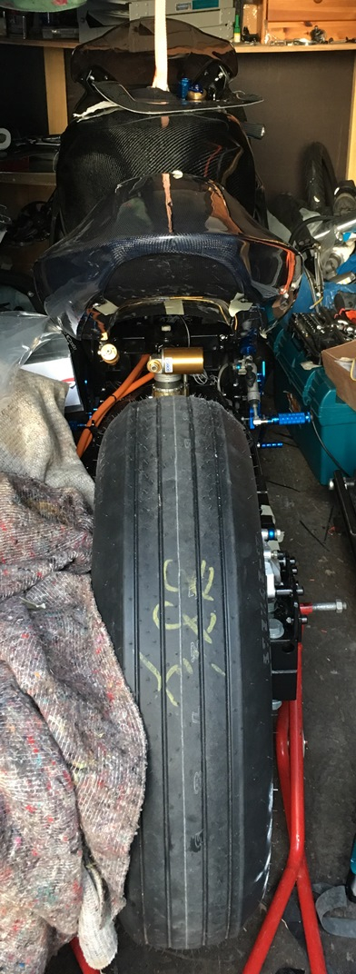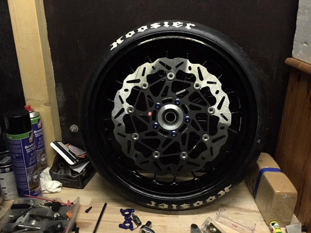 Die Bremsscheibe ist nicht größer wie die Originale aber das "radikale" Design und der schmale Hoosier tragen ihren Teil für das monströse Aussehen bei.