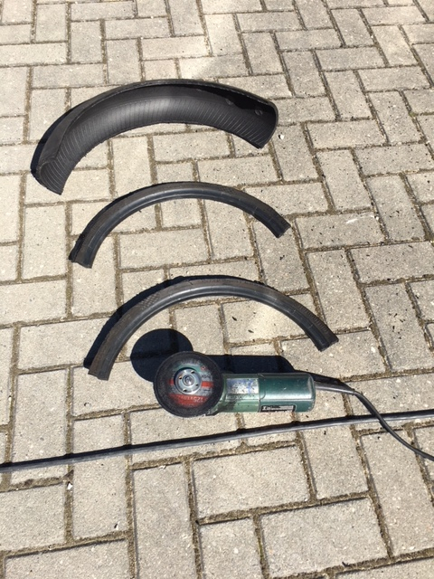 Deshalb habe ich mir nun den alten 120/70-17" Reifen genommen, mich mit einer Flex bewaffnet