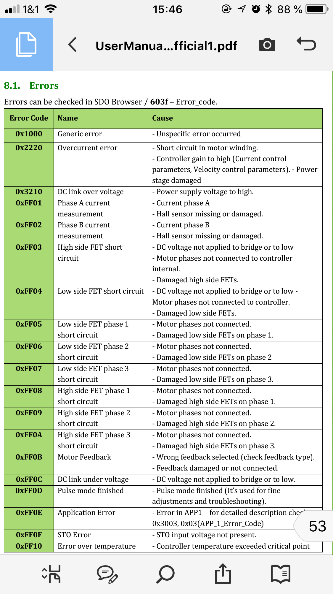 Ich darf auch nicht hart von Null auf Vollanschlag drehen, dann schaltet der Regler ab und leider habe ich auch da vergessen den Fehlercode auszulesen aber im Video sieht man ungefähr was ich meine: