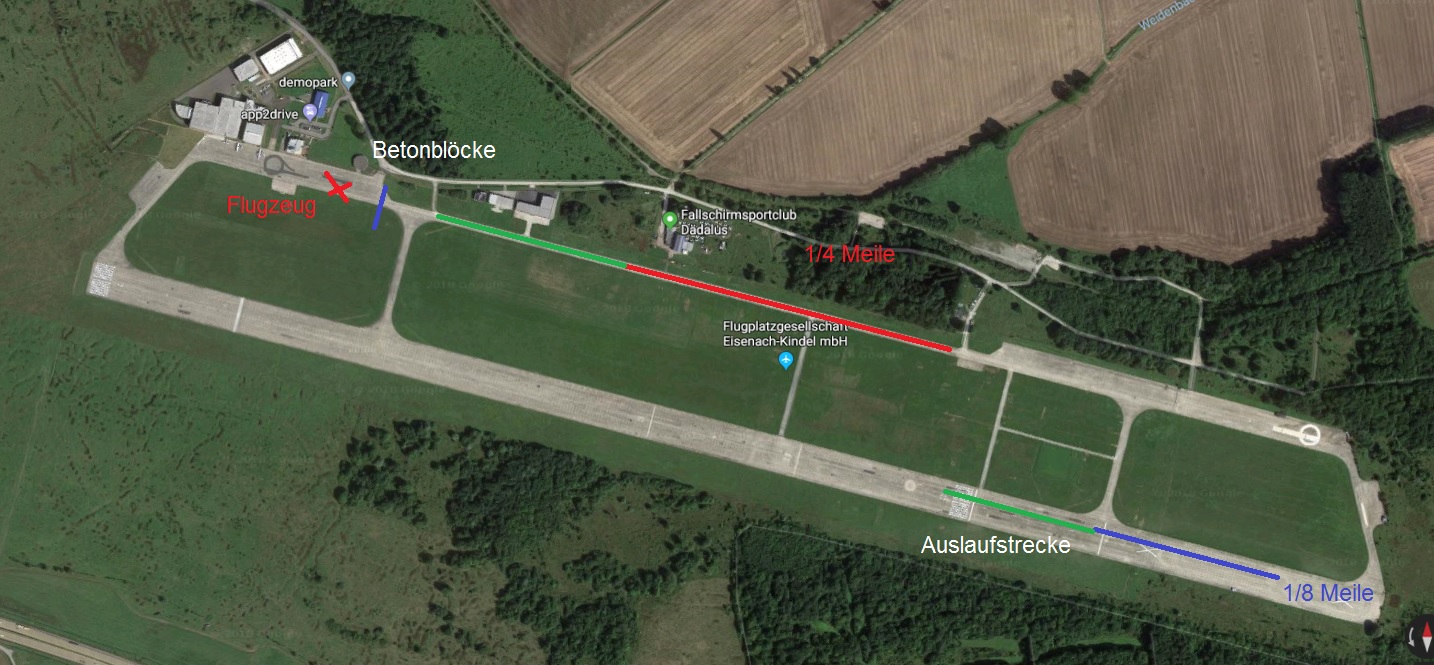 Ne, im Ernst, die Drags nutzen scheinbar den ehemaligen 500m langen östlichen Fliegerparkplatz, und die Startbahn liegt ja weiter südlich. Der Pilot wollte wahrscheinlich Richtung Startbahn abbiegen. Das passt schon.