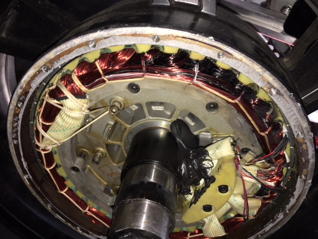 Und im nachinein betrachtet ist meine Frage wohl auch eher akademischer natur, denn die Luft im Motor wird durch den umlaufenden Rotor natürlich zumindest beim Fahren gründlich durchgewirbelt, so dass alle Bereiche des Stators eine ähnliche Temperabelastung aufweisen dürften. Einzig die Tatsache, dass der verbrannte Wicklungsbereich direkt da endet/beginnt, wo die drei Phasen radial von innen nach außen auf den Stator verteilt werden spricht for eine potentiell höhere Wärebelastung in diesem Statorquadranten.