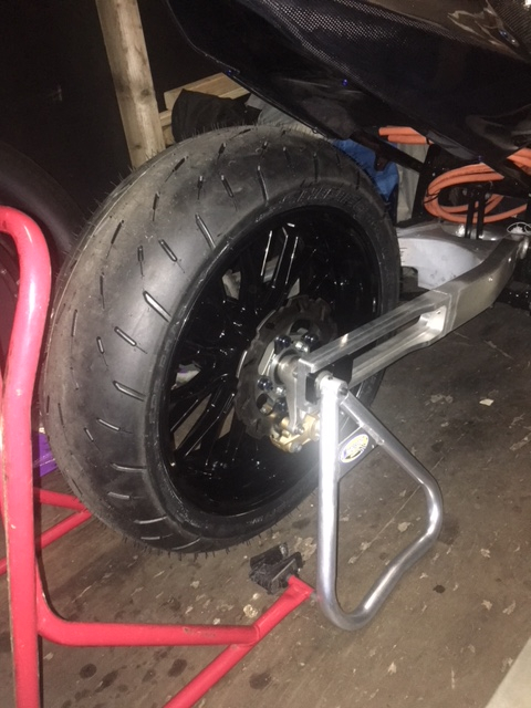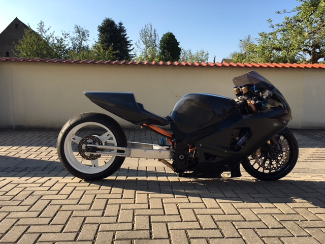 Den Radstand werde ich aber aller Voraussicht nicht so fahren. Das Öhlins (2,5kg) ist draußen dadurch wird der Abstand Heck-Reifen immer konstant bleiben und Federn wird es über die Gabel vorne.