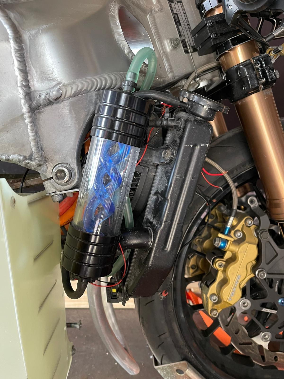 Erst wenn im Wasserkühlsystem Zuviel Druck drauf wäre öffnet der Wasserkühler und lässt das Kühlwasser über den Ausgleichsbehälter raus. Das Wasser wird unten reingedrückt und der Wasserstand steigt in dem Behälter. Wenn er voll ist, würde er es aktuell über den Durchsichtigen Schlauch ins Freie rausdrücken.