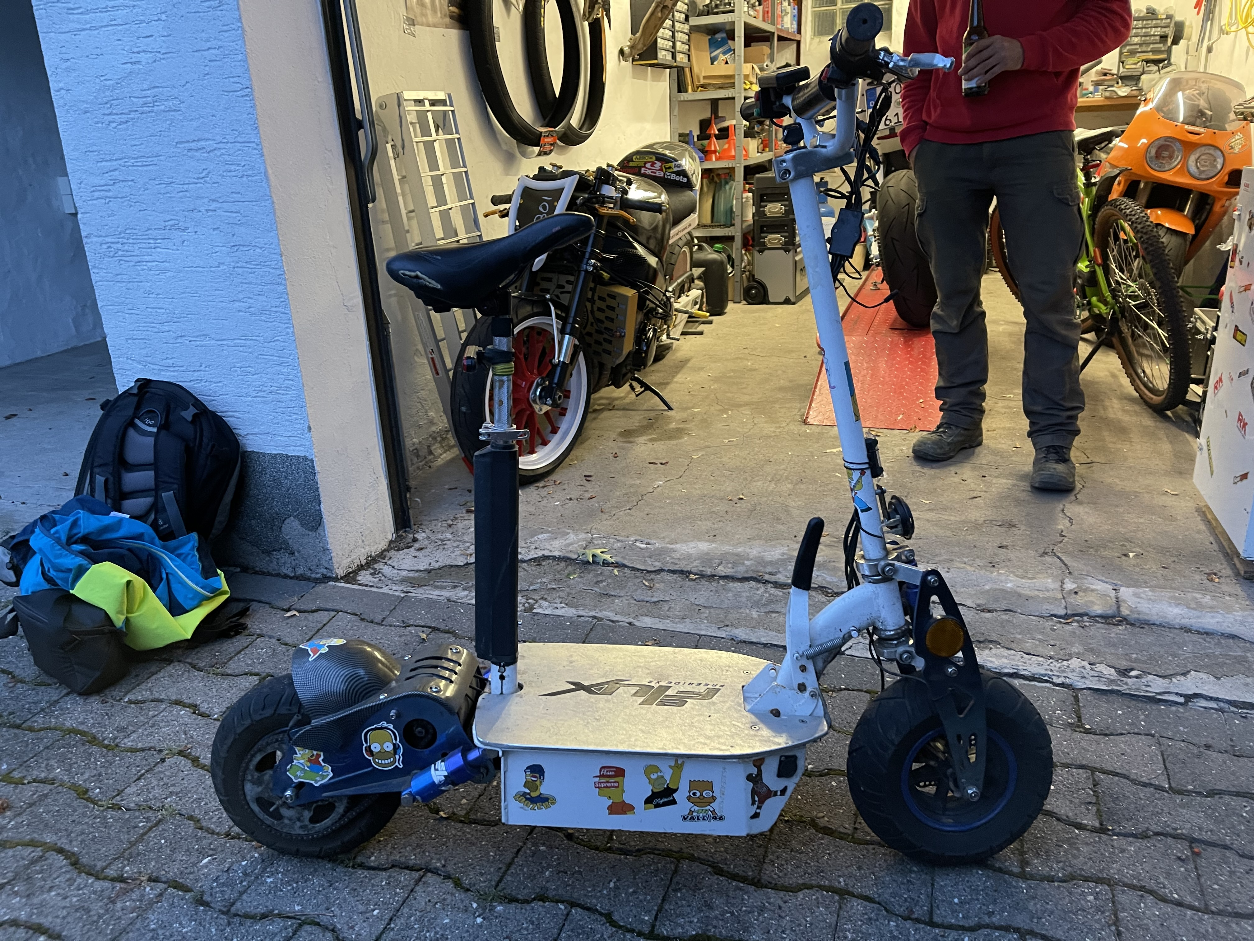 Habe kürzlich für einen Kollegen einen Akku für einen etwas kleineren scooter zusammengeschustert. Da waren 3x12V 17Ah Blei verbaut. Ins Akkufach gingen nach etwas Modifikation dann 10S2P (20Stück 30Ah) Pouch Zellen rein. Nach einem Reglerupdate geht das olle Ding nun gut vorwärts und ist für die Boxengasse oder das Fahrerlager schon fast zuviel des Guten.