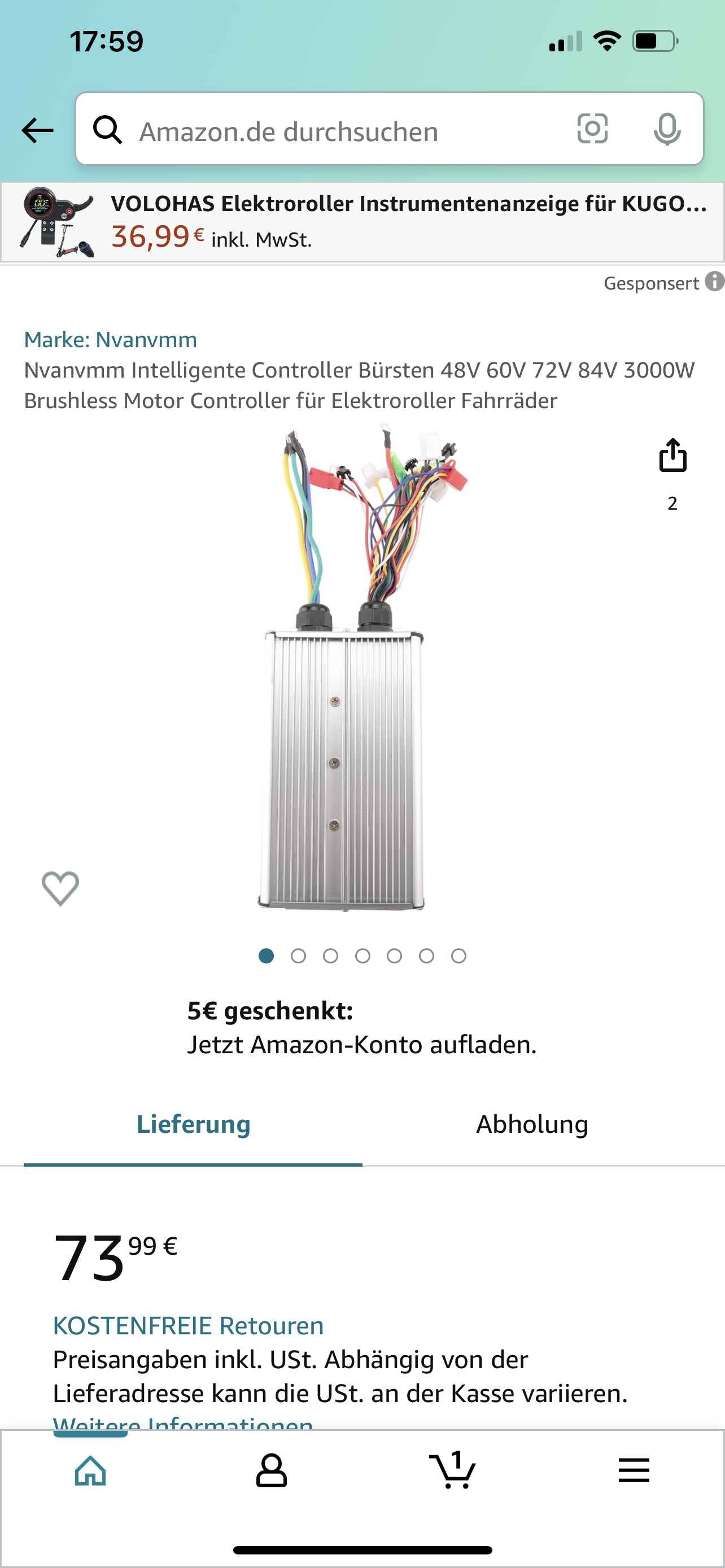 Display funktioniert eh nicht und mal schauen, ob der Regler auch 75,6V verträgt. Meistens steht 60V drauf und in den Werbeanzeigen 72V …
