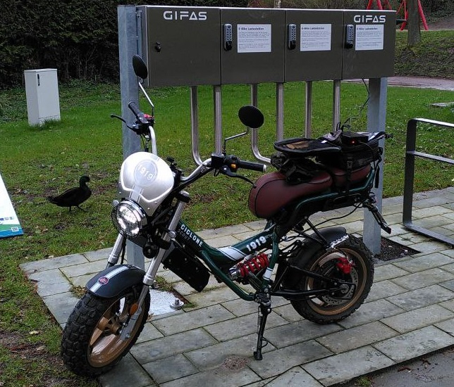 Die Stollenreifen sind ziemlich laut und begrenzen sicherlich auch die Reichweite. Mein nächstes Ziel ist, Straßenreifen draufzumachen und dann zu schauen, was sich verändert. Für Ausflüge über Feldwege und Schotter werden die trotzdem dicke reichen. Dafür bräuchte ich als eifriger Laie aber erst noch eine Anleitung von meinem Händler oder von Garelli, weil das Handbuch gar nichts zum Ausbau des Radnabenmotorreifens hergibt. Beide tun sich bisher aber sehr schwer mit dem Antworten