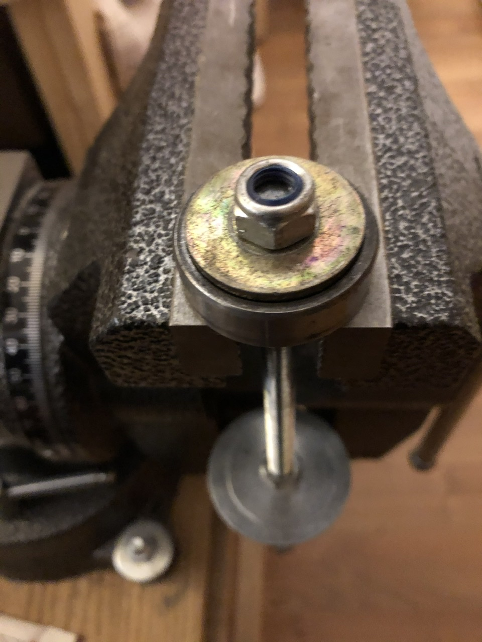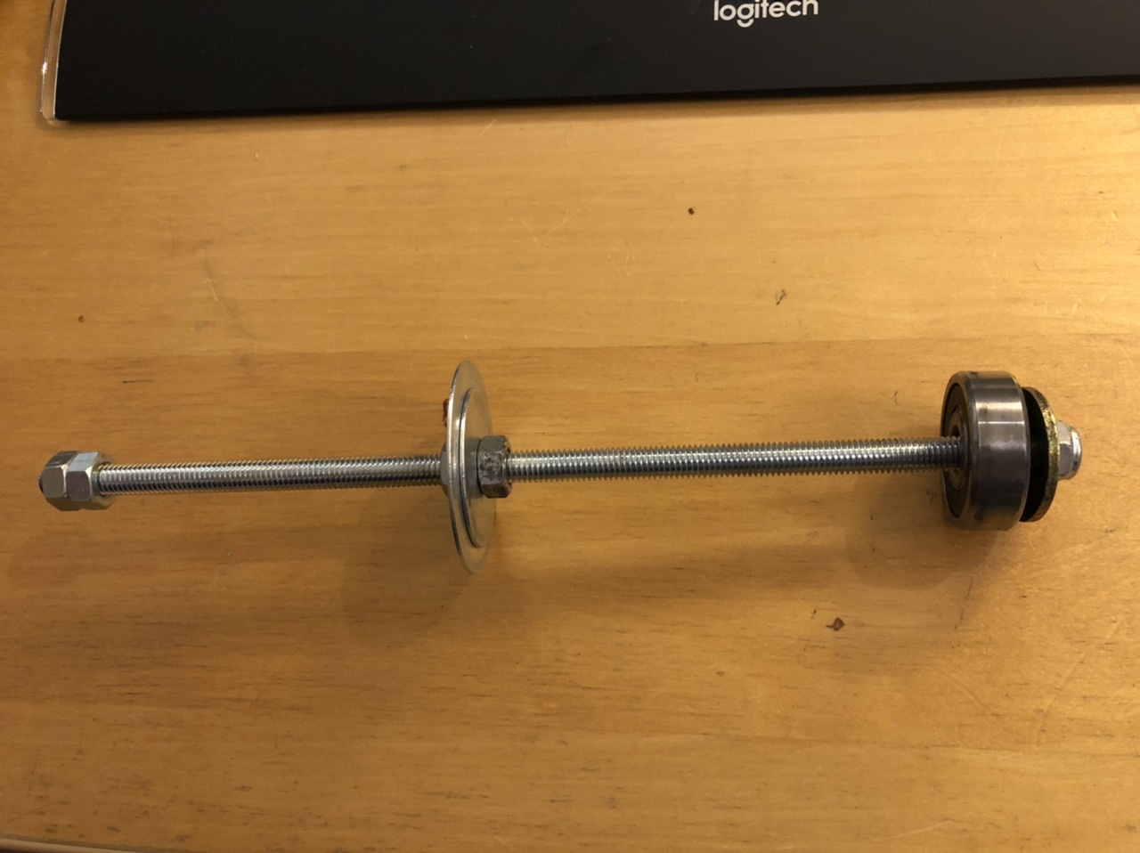 Die das Kugellager ziehende Beilegscheibe sollte tatsächlich so groß sein, dass sie zwar nur wenige Millimeter kleiner als das Kugellager (35mm) ist. Ich hatte dazu nur eine 30 mm große Beilegscheibe, falls es das gibt wäre 33-34mm Durchmesser optimal um vor allem das neue Lager bei Einbau zu schützen, dass es beim hineinziehen nicht zerlegt wird, was bei mir mit WD40 und 30mm Scheibe aber weder beim alten defekten noch neuen Lager passiert ist. Anbei noch ein Foto der Gewindestange mit Beilegscheiben.