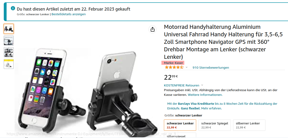 Die Halterung ist mir zu wuchtig. Vor allem stört mich auch der obere Schließmechanismus. Und da mein Handy nur 6,6 Zoll bei 190 g Gewicht hat, tut es sicherlich auch eine weniger martialische Ausführung. Immer diese "Handy-SUV's". 300 g... das ist ja schon fast das Gewicht eines Ziegelsteins, den man da in der Hosentasche mit sich herumschleppt.Knollo hat geschrieben: ↑Mi 22. Feb 2023, 18:11Ich hab die: https://amzn.eu/d/iEkGeAa