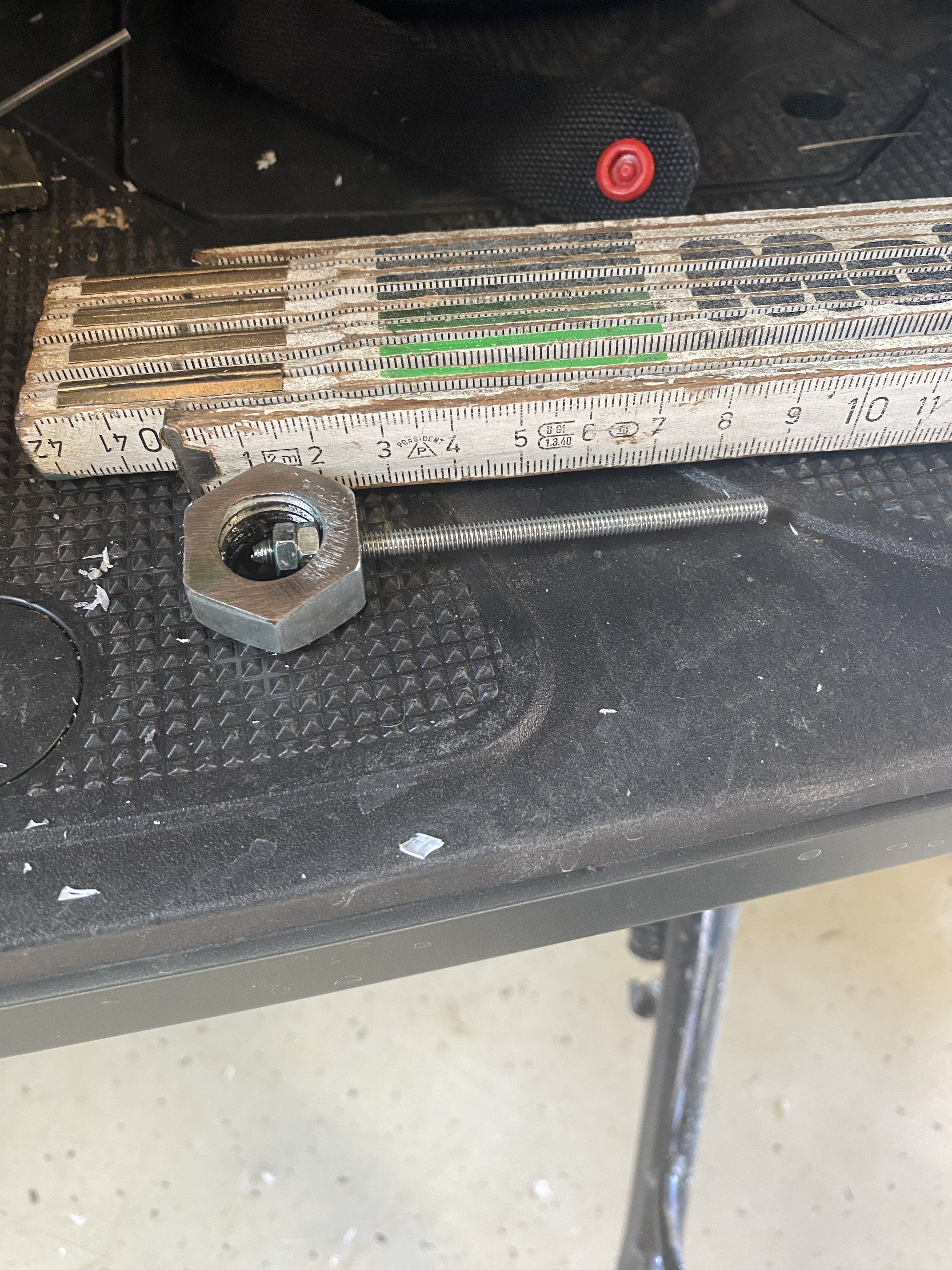 Die Mutter muss schräg angeschliffen werden, sonst lässt sie sich nicht vor den Bremshebel einführen.