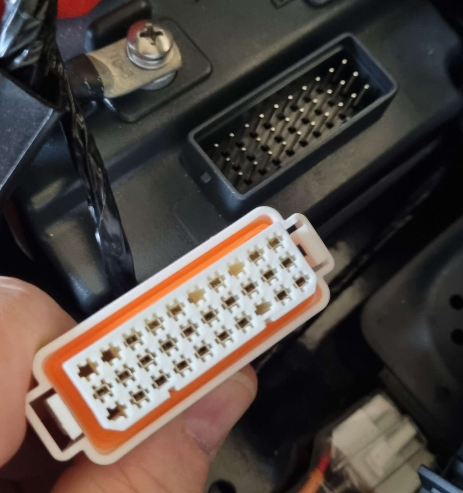 Tja, nun bin ich mir ziemlich sicher, das diese 4 Strippchen der Diagnose dienen. Aufgrund des anderen Steckers hab ich nun keine Ahnung, was davon was sein könnte. Try&Error fällt raus, da ich keinen Schaden anrichten möchte.