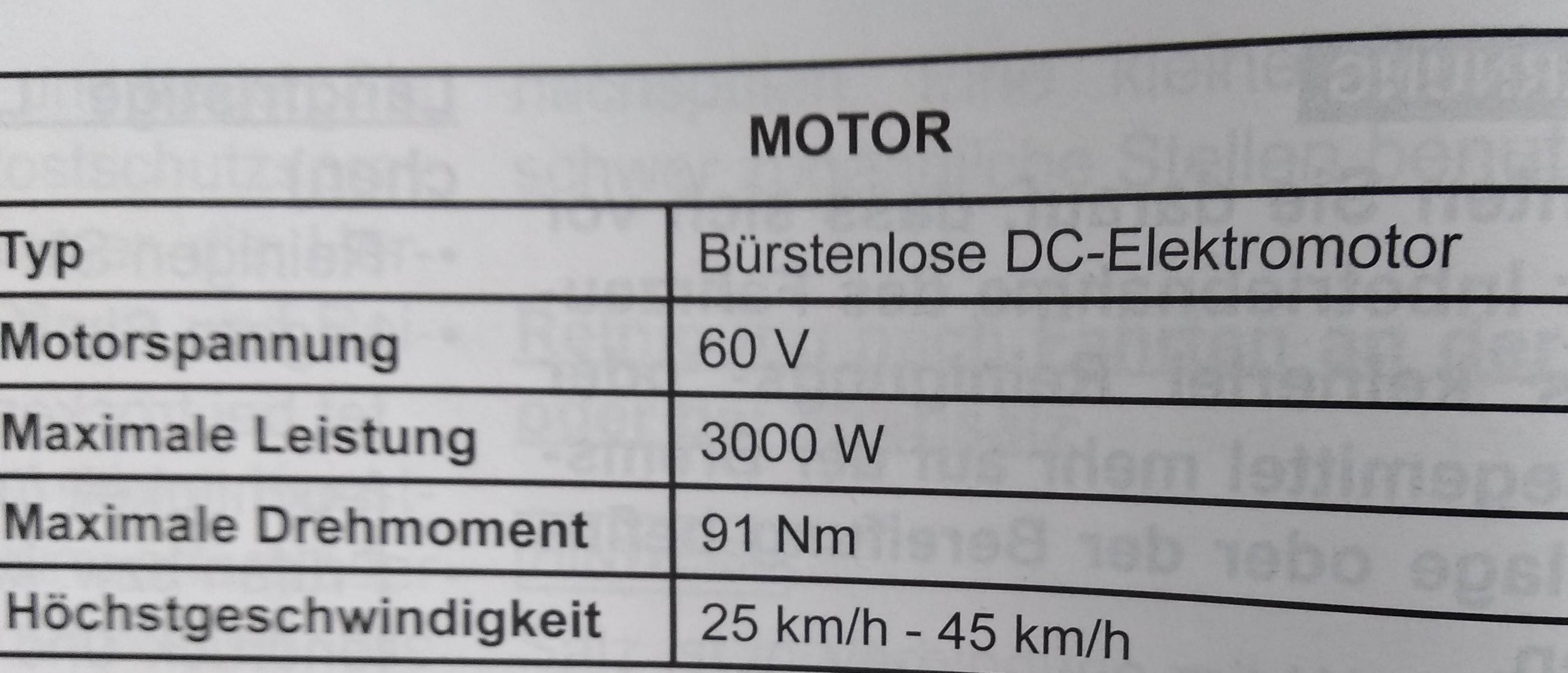 Was ich nicht so recht glaube sind diese 3000Watt Motorleistung.