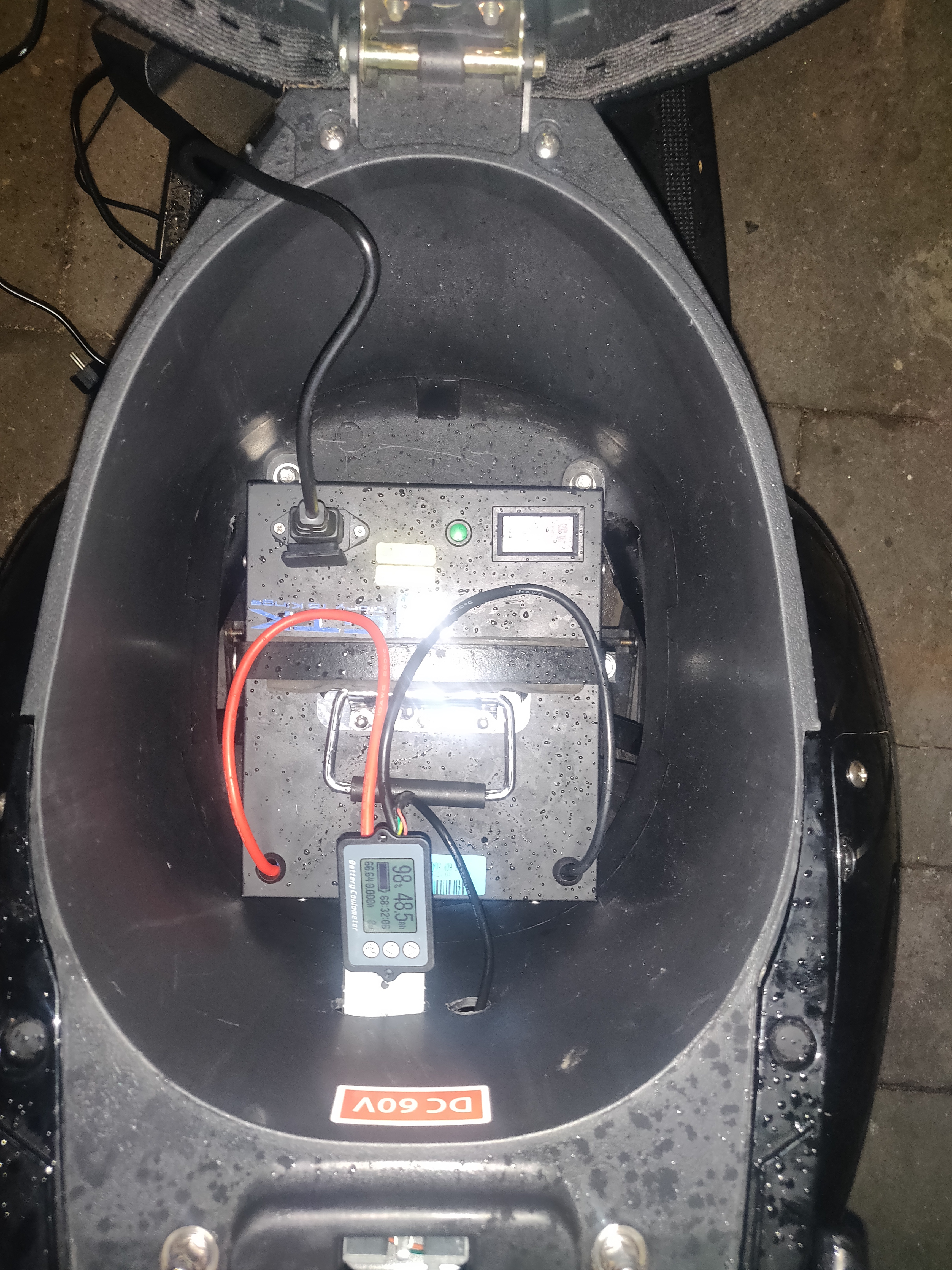 Es ist jetzt alles zusammen, man hätte weniger absägen können , aber das weiß man erst wenn es zu spät ist. Jetzt kann ich passend zum Akku. 2 Schablonen machen und den Rest vom Boden anpassen. Jetzt habe ich auch gleich 2 Anschlüsse zum Laden. Das Coulometer muss ich mal noch fein justieren und paar Probefahrten machen, dann fliegt das raus. Der Akku soll über BT mit mir reden, aber der Support hat gerade Frühlingsfest.
