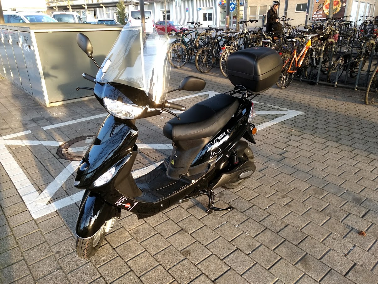 ich fahre seit März einen eCity Star von Nova Motors. Bestellt habe ich Mitte Februar und geliefert wurde er nach 4 Tagen. Vermutlich hatten die wenig zu tun in der Zeit. Ich habe mir dann noch eine Windschutzscheibe in der Bucht bestellt und drangebaut, außerdem ein Topcase für den Helm, da dieser nicht unter die Sitzbank passt.