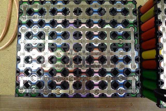Jeder Akku ist ein 4S Akku und 5 in Reihe ergeben 72 Volt.