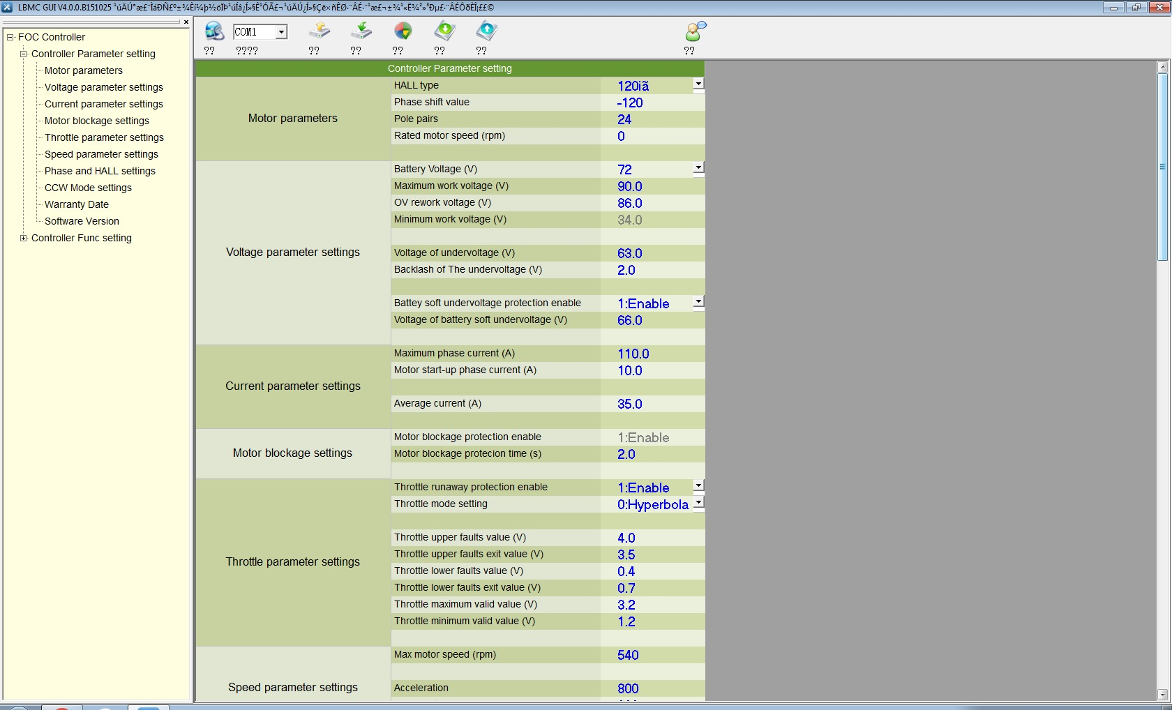 Servus ich war jetzt noch mal an dem Pc, hier ist das Backup von den Vorher Einstellungen. Verändert habe ich nur die Einstellungen wie in der Beschreibung von Schwalbenblitz diese sind aber eigentlich für den Roller mit Lithium Akku und 60 Volt. Der Bleier läuft aber mit 72 Volt deshalb hoffe ich hier noch andere Leute zu finden die auch den Controller Programmiert haben mit eventuell anderen Einstellungen für die Blei Batterie.