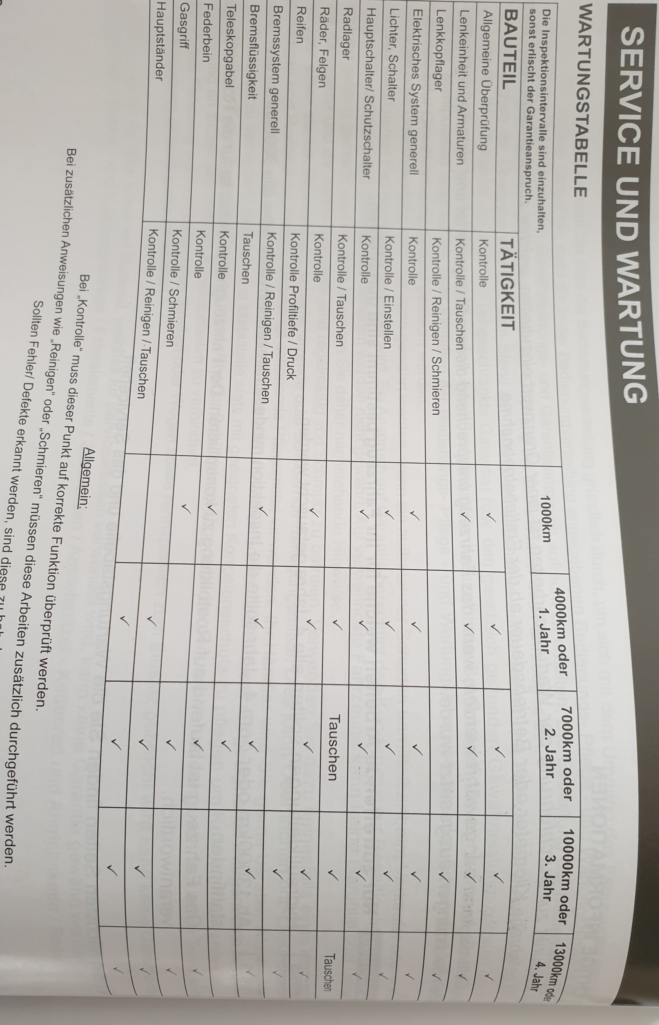 Ich war heute bei ATU und wollte mich über die Inspektions Intervalle ab dem Kauf für den Explorer E-Cruzer 2019 Motorroller informieren. In 2 Filialen konnte mir keiner Informationen dazu geben und gaben zu sich nicht mit dem E-Roller aus zu kennen.