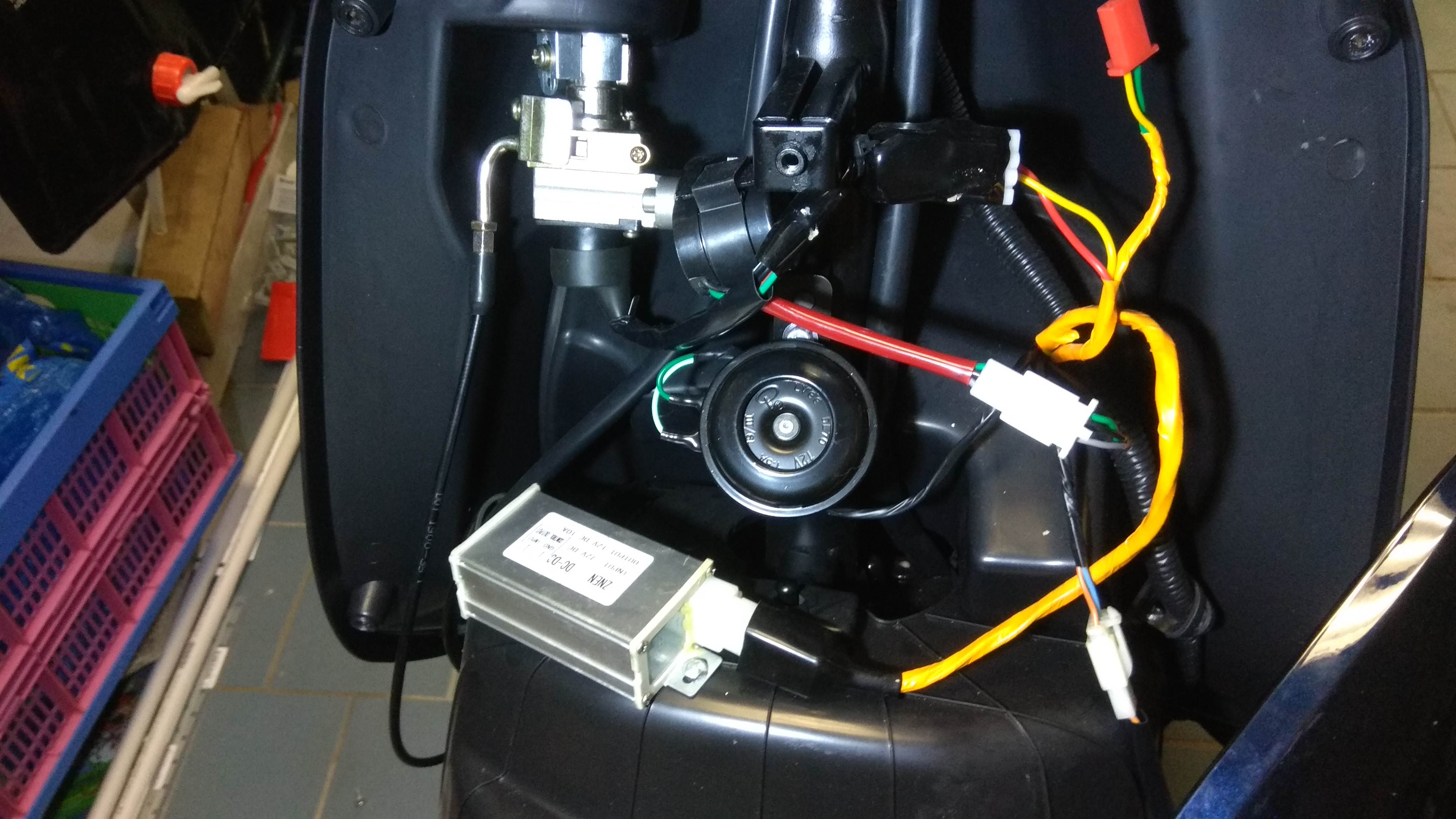 dieses kleine schwarze Teil ist ein Magnetsensor. In Abhängigkeit der magnetischen Feldstärke wird eine Analogspannung ausgegeben. Die Betriebsspannung wird wahrscheinlich 5Volt oder 3,3Volt sein. Ein einfaches Potentiometer würde durch den mechanischen Verschleiß Probleme machen. Das kennst du sicher von alten Lautstärkereglern die irgendwann das kratzen beginnen. Beim Gas geben hätte das unter Umständen fatale Folgen. Das du den Roller nicht aus der P-Position bekommst, hängt auch damit zusammen. Das Analogsignal hängt jetzt in der „Luft“. Wenn man Gas gibt und dann aus der P-Position will wird das auch nicht funktionieren. Es ist vom Controller ein Schutzmechanismus. Meist werden die Sensoren auf den Controller kalibriert. Kein Gas und Vollgas. Du wirst den Sensor wohl als Ersatzteil bestellen müssen.