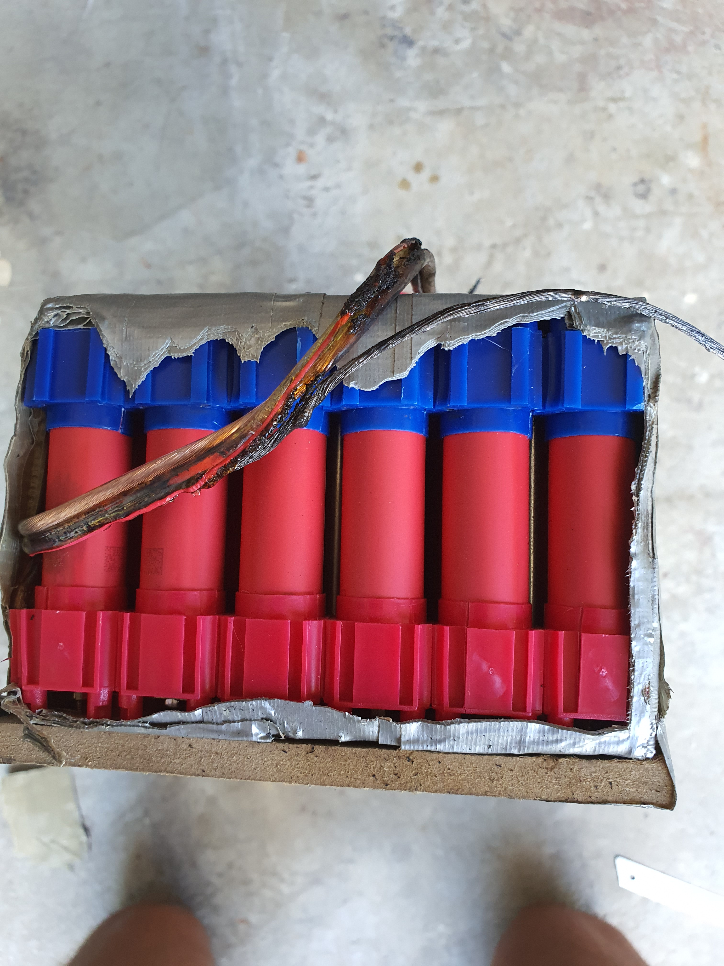 Sieht nach völliger unterdimensionierung des Kabelquerschnitt aus. Ist halt fraglich ob da ein bms dran ist. Wenn ja dann könnten die Zellen noch am Leben sein aber da muss man selber durchmessen.
