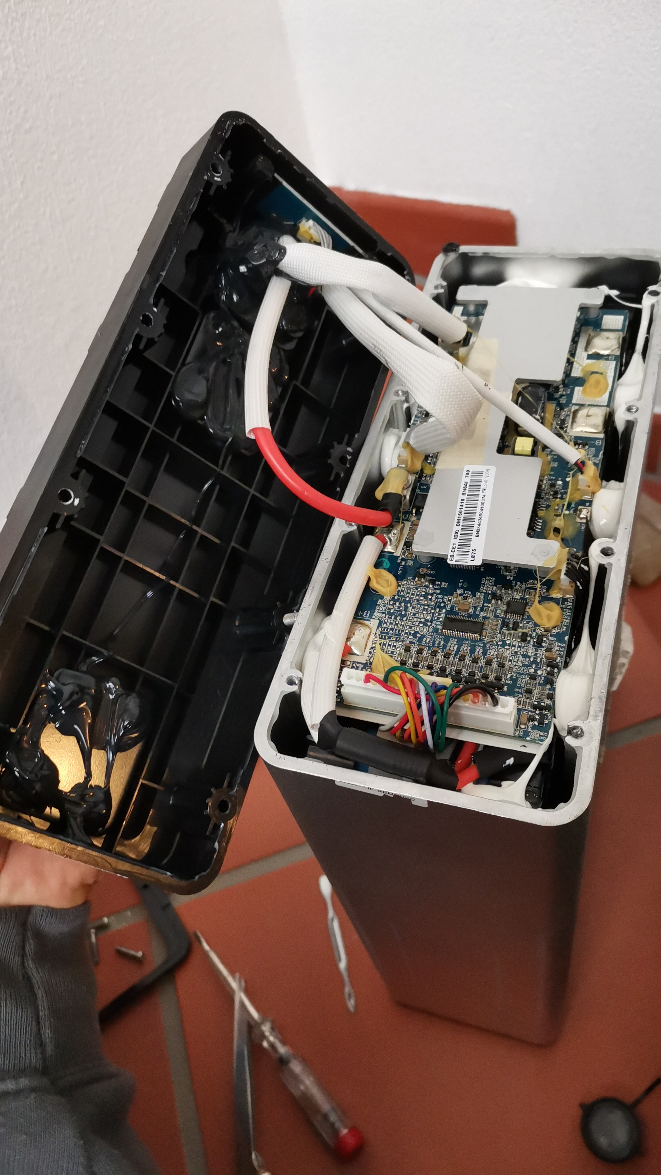 Solltest du das tatsächlich in Erwägung ziehen musst du den Deckel oben komplett abbauen (zu den Schrauben natürlich verklebt) im inneren musst du dann auch noch kleber von 2 weiteren Steckern entfernen und diese trennen damit du den Deckel komplett abnehmen kannst