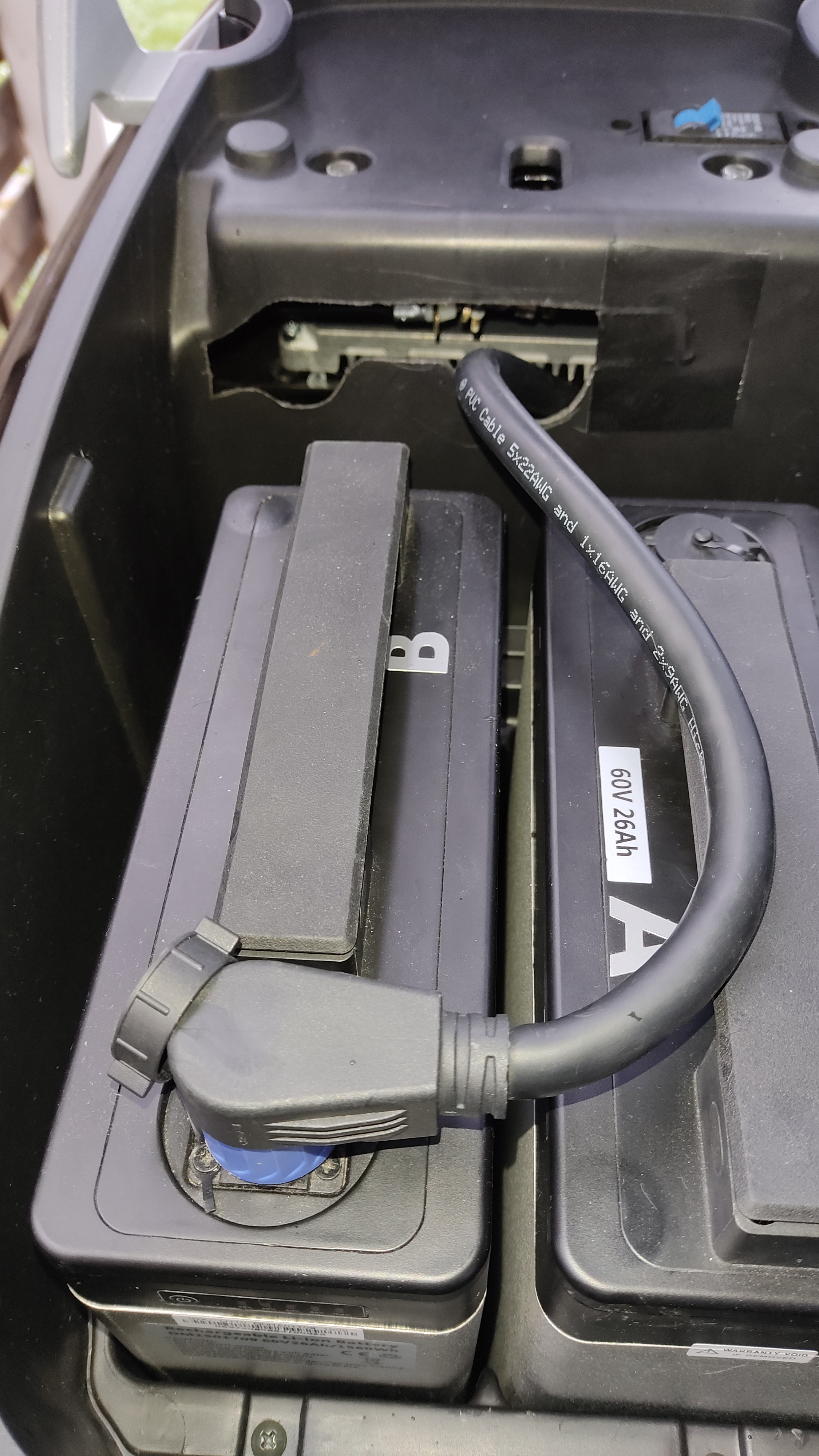 wie bekannt habe ich seit kurzem einen INOA S5 Li von Nova-Motors. Gleich dazu bestellt habe ich einen 2. Akku. Nun musste ich aber feststellen, dass das Umstecken des Stromsteckers, wenn der 1. Akku während der Fahrt leer ist, nicht so ohne weiteres machbar ist.