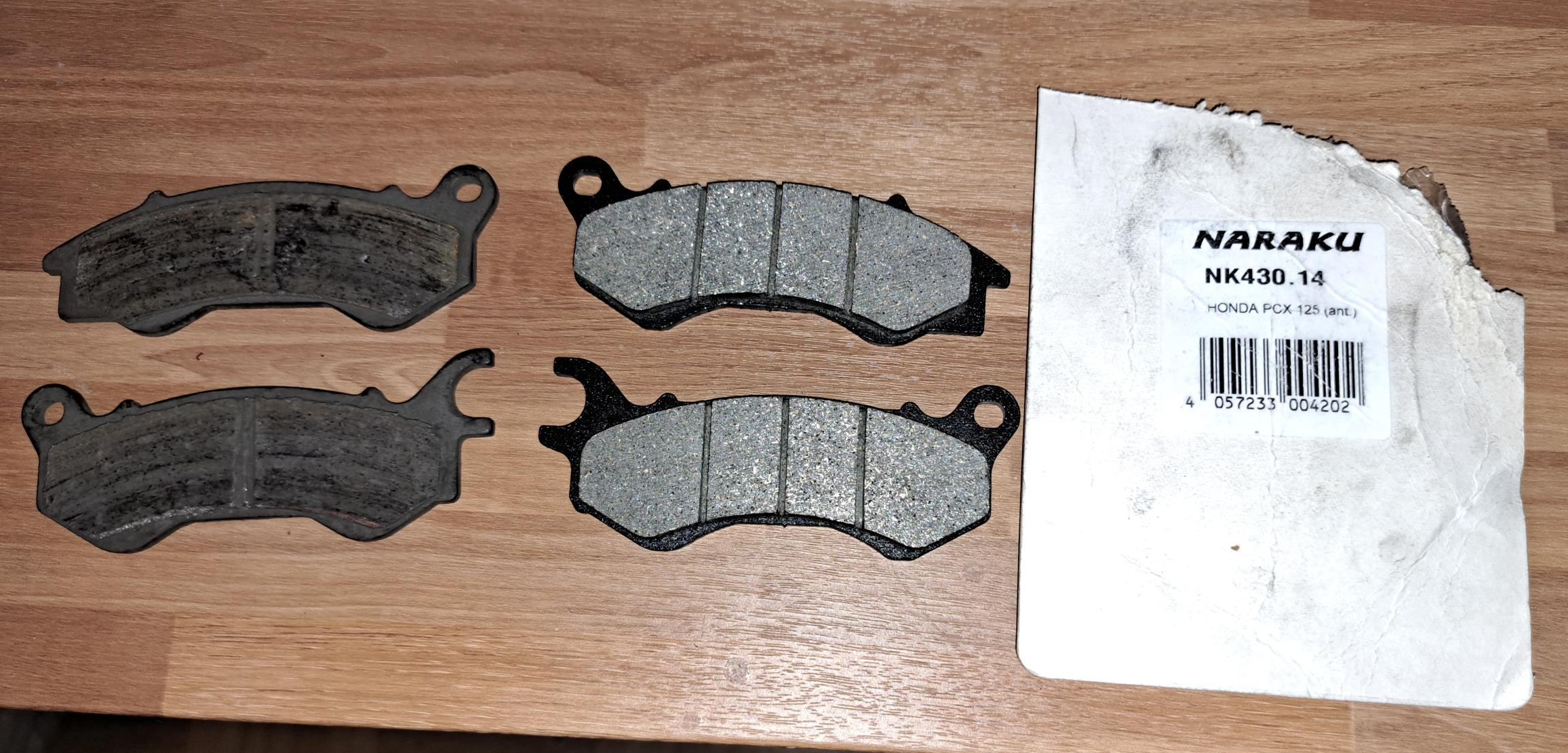Gängig scheinen mir eher diese Beläge (Honda CBR125) zu sein, bei denen der kleinere aber offenbar etwas kürzer ist (als der für Honda-PCX125, wo die Scheibenbremse links montiert ist).