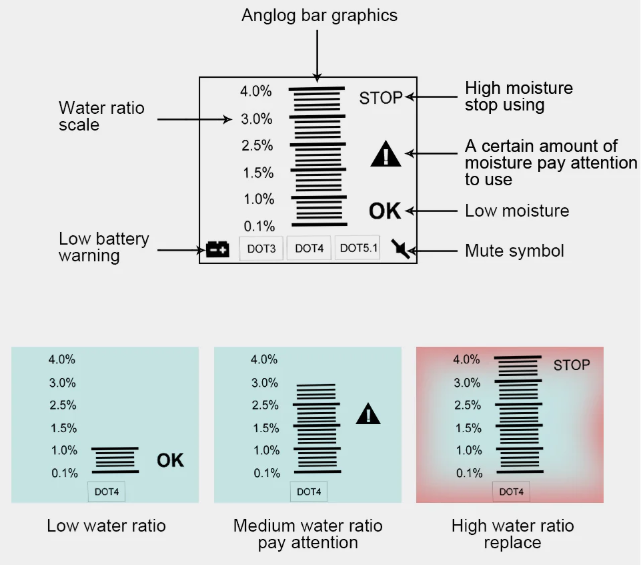 Wasseranteil der Bremsflüssigkeit gemessen mit DUOYI DY23 B Brake Fluid Tester (gekauft vor 5 Jahren bei eBay):