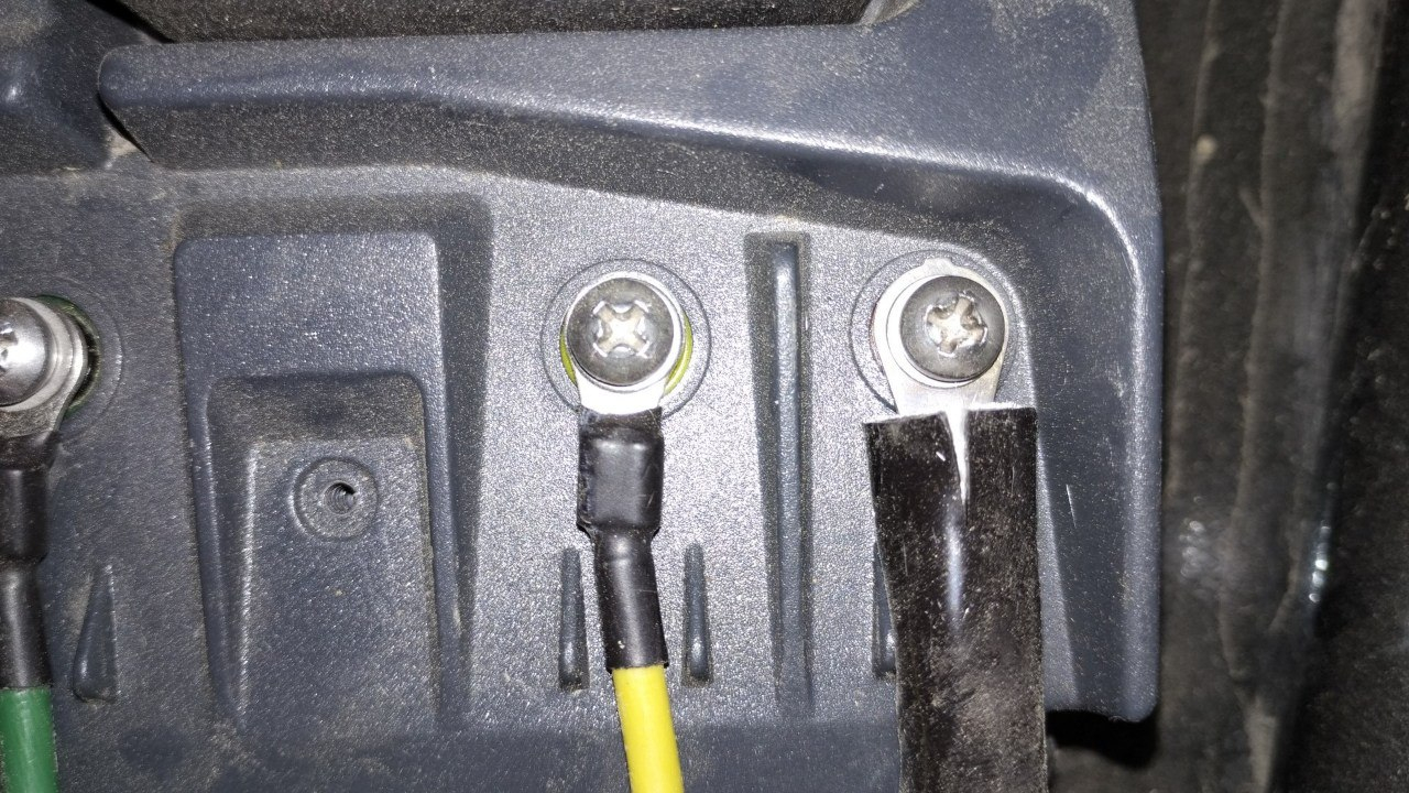 Was mir dabei noch aufgefallen ist, daß das Plus-Kabel etwas dicker als die anderen ist. Seltsamerweise ist der Kabelschuh ("Öse") aber einen Hauch dünner (bei seitlicher Draufsicht) als die bei den anderen Kabeln.