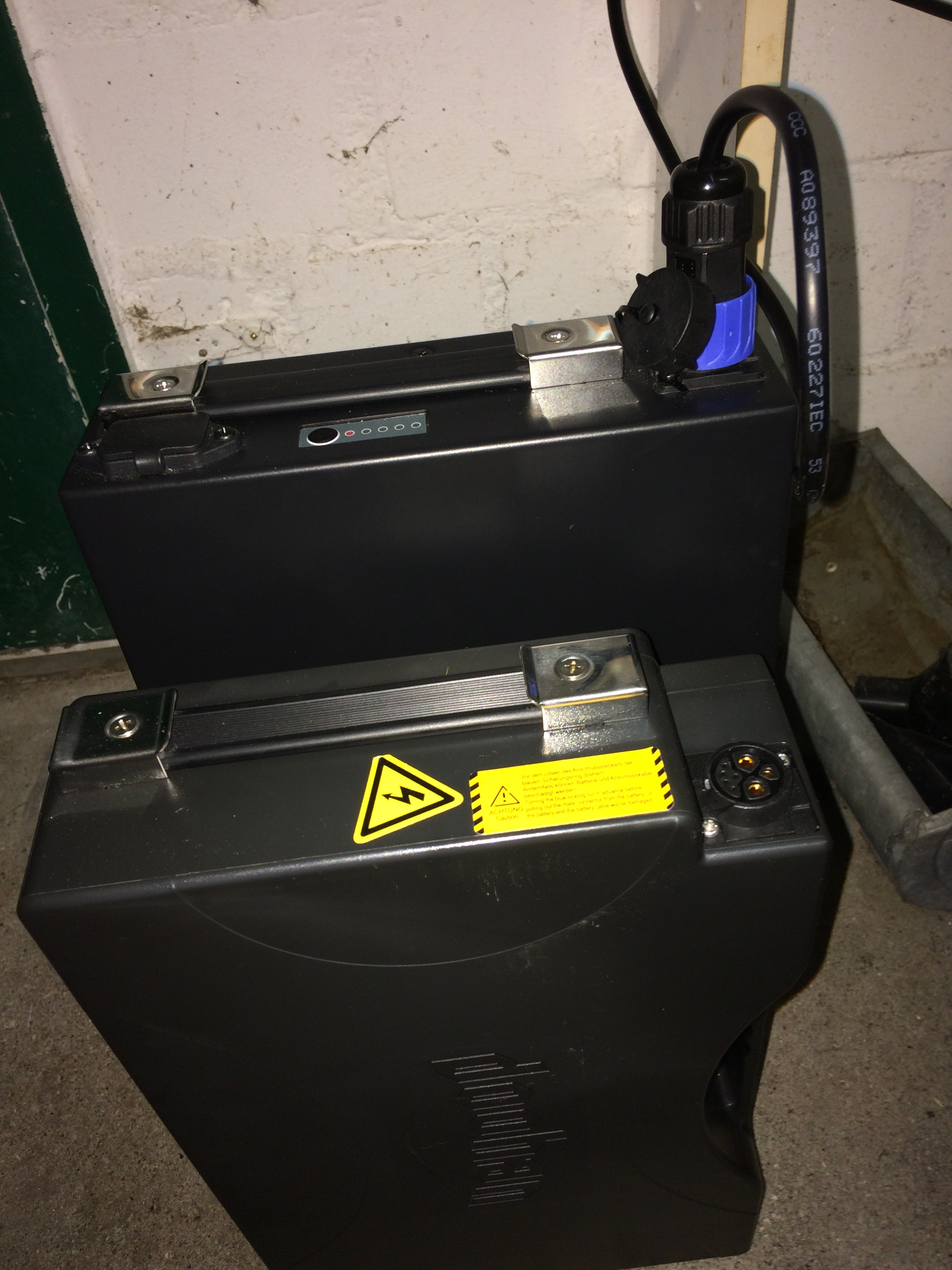 Der Seed Akku ist deutlich kleiner und leichter als der ATU Original-Akku. Interessanterweise trägt er dieselbe Bezeichung wie der ATU-Akku: 16ICR19/65-8. Tatsächlich sind beide Typen 16s Lithium-Ionen Akkus mit einer Ladeschlussspannung von 65.6V (Seed) bzw. 67.2V (E-Cruzer). Das sind 4.1V bzw. 4.2V pro Zelle. Der Seed Akku kann aber ohne weiteres mit dem Ladegerät des E-Cruzers auf 67.2V aufgeladen werden.