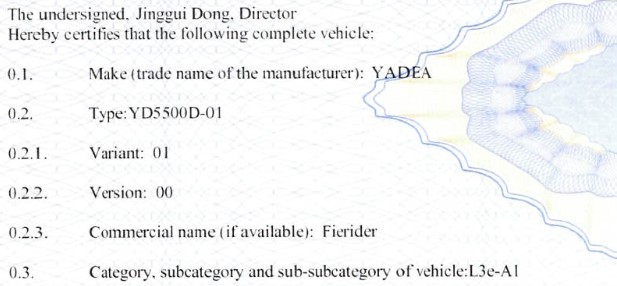 Mir war aufgefallen, dass im Kaufvertrag die Bezeichnung F200 drin steht - das aktuelle Modell auf der Yadea-Homepage aber mit FS201 betitelt ist.