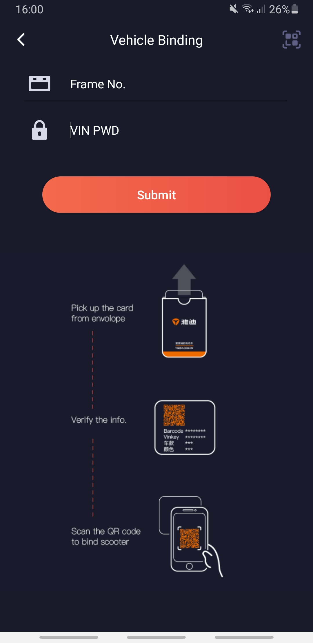 Habe das Passwort von Yadea bekommen, bekomme aber immer die Fehlermeldung, dass das Fahrzeug nicht existiert?