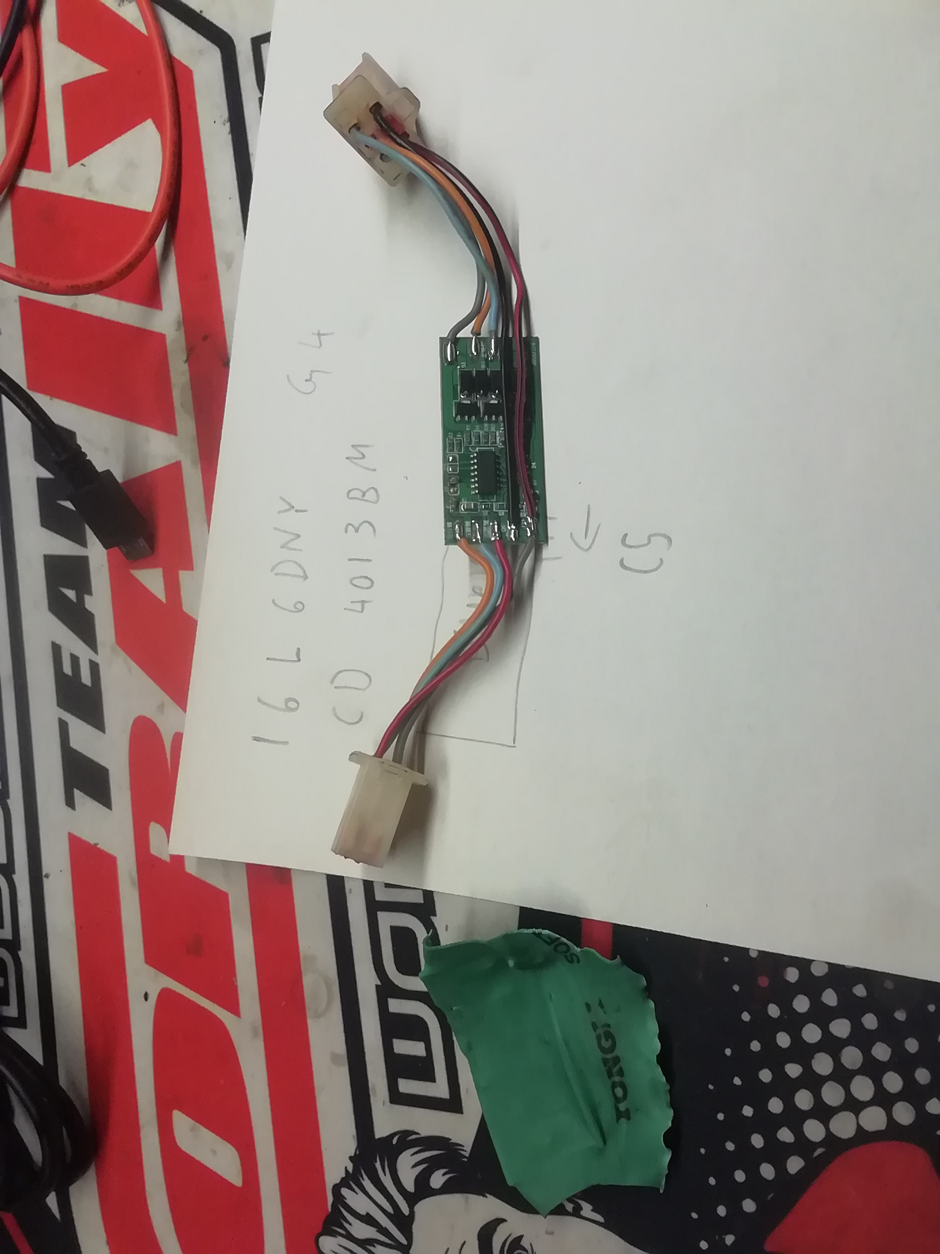 In der Anleitung ist ein ganz arg schlechter Schaltplan: Ich habe mal die Wachsmaler ausgepackt und Vermutungen angestellt was da was ist. Das rot bezeichnete Ding halte ich für eben dieses Bauteil. Ist das realistisch und wo würde man es vermuten?