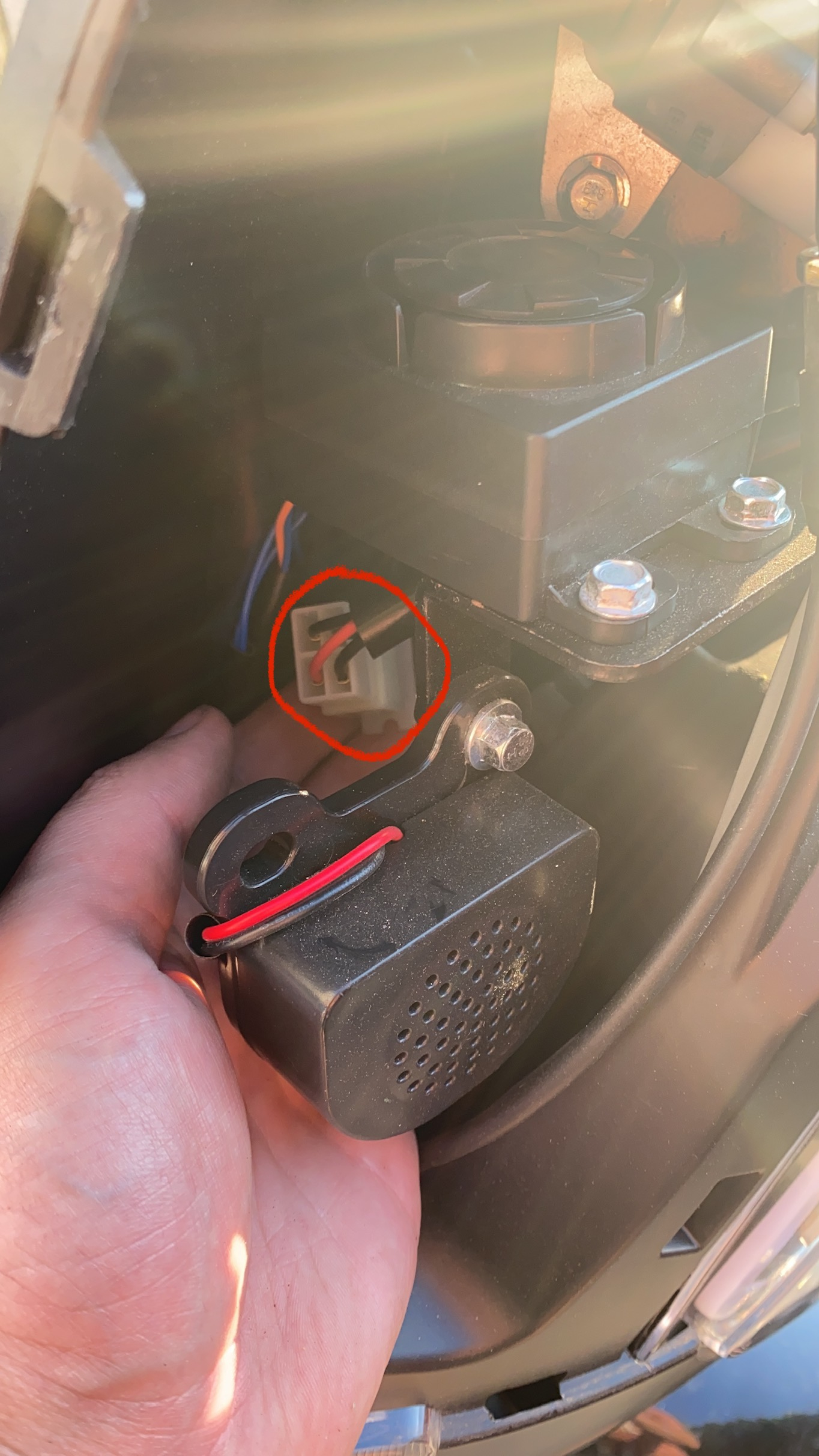 Multimeter auf Durchgangsprüfung und piepsen lassen und an allem erreichbaren wackeln. Mehr Plastik abbauen, mehr wackeln. Im Lenker riecht es am Ende verdächtig nach verbrannter Elektronik. Jeden Stecker abziehen bis das Multimeter nicht mehr piepst und über bleibt ein Dings was irgendwas mit dem Blinker zu tun hat. Hier findet sich ein Brandloch.