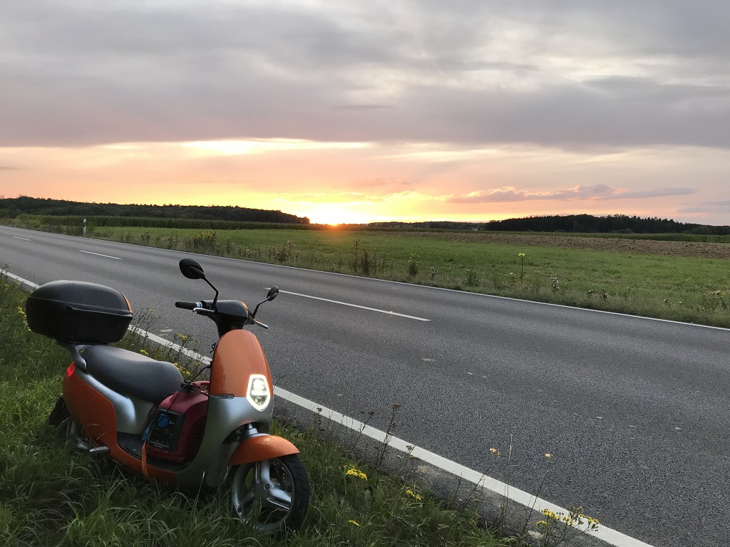 Nach einem möglichst langgezogenen Museumsbesuch mit kleinem Snack, ging es dann mit 74% wieder los. Die Sonne ging passend für ein hübsches Bild unter und der Akku leerte sich zunehmend.