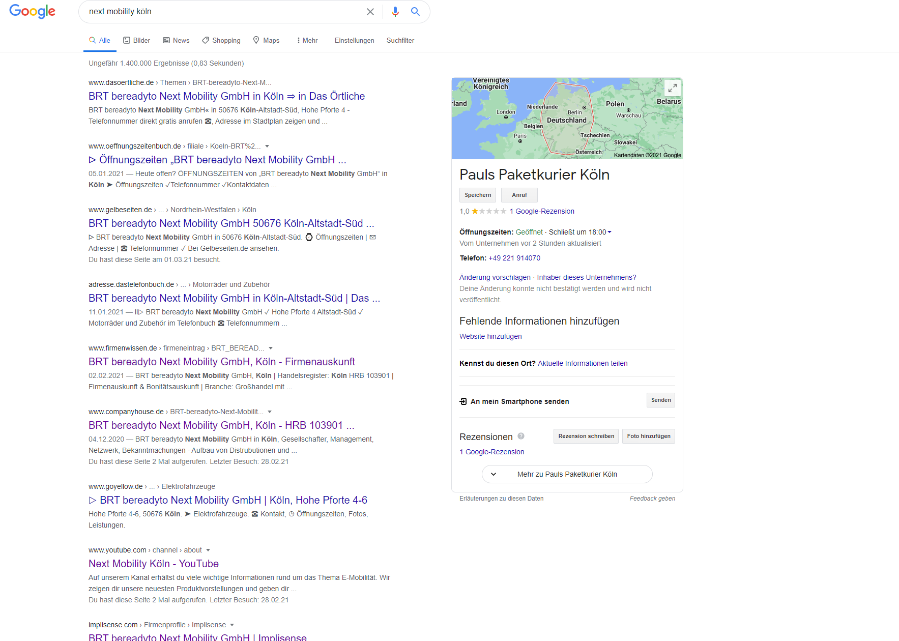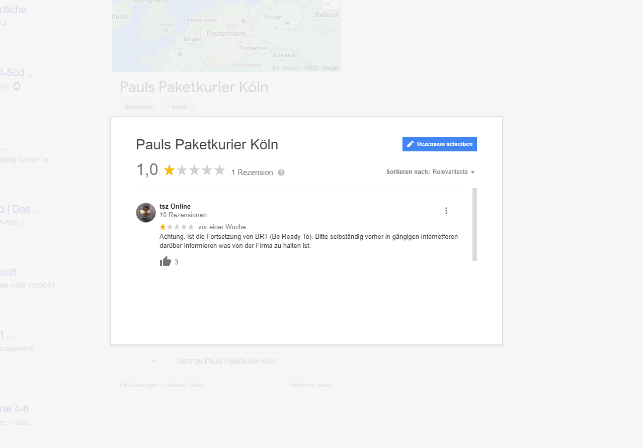 ist laut Google "Pauls Paketkurier Köln" geworden.