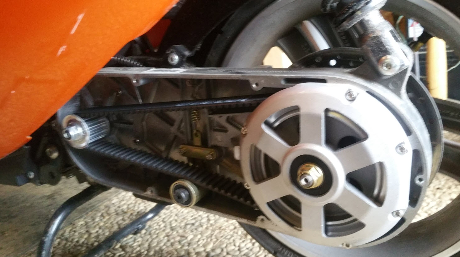 Hier der Lenkerbereich Hier die Antriebsschwinge, man sieht den Direktantrieb mit Übersetzung knapp 1:5 wars glaub. Der Riemen ist überraschend kräftig wie ich finde.