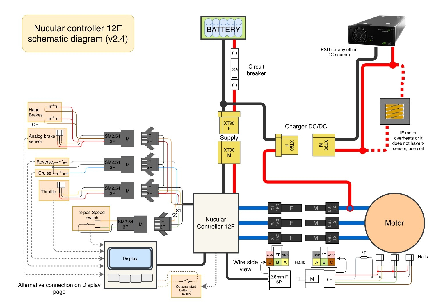 Dein Nuk12f 12 Mostfets Controller ist mit max. 150A Batteriestrom sowie max. 250A Motorphasenstrom wohl schwächer als ein Sabvoton (MQCON) SVMC72150, welcher schon erfolgreich im Forum eingesetzt wird. Durchdrehendes Hinterrad hätte es wohl mit dem Nuk24f gegeben.