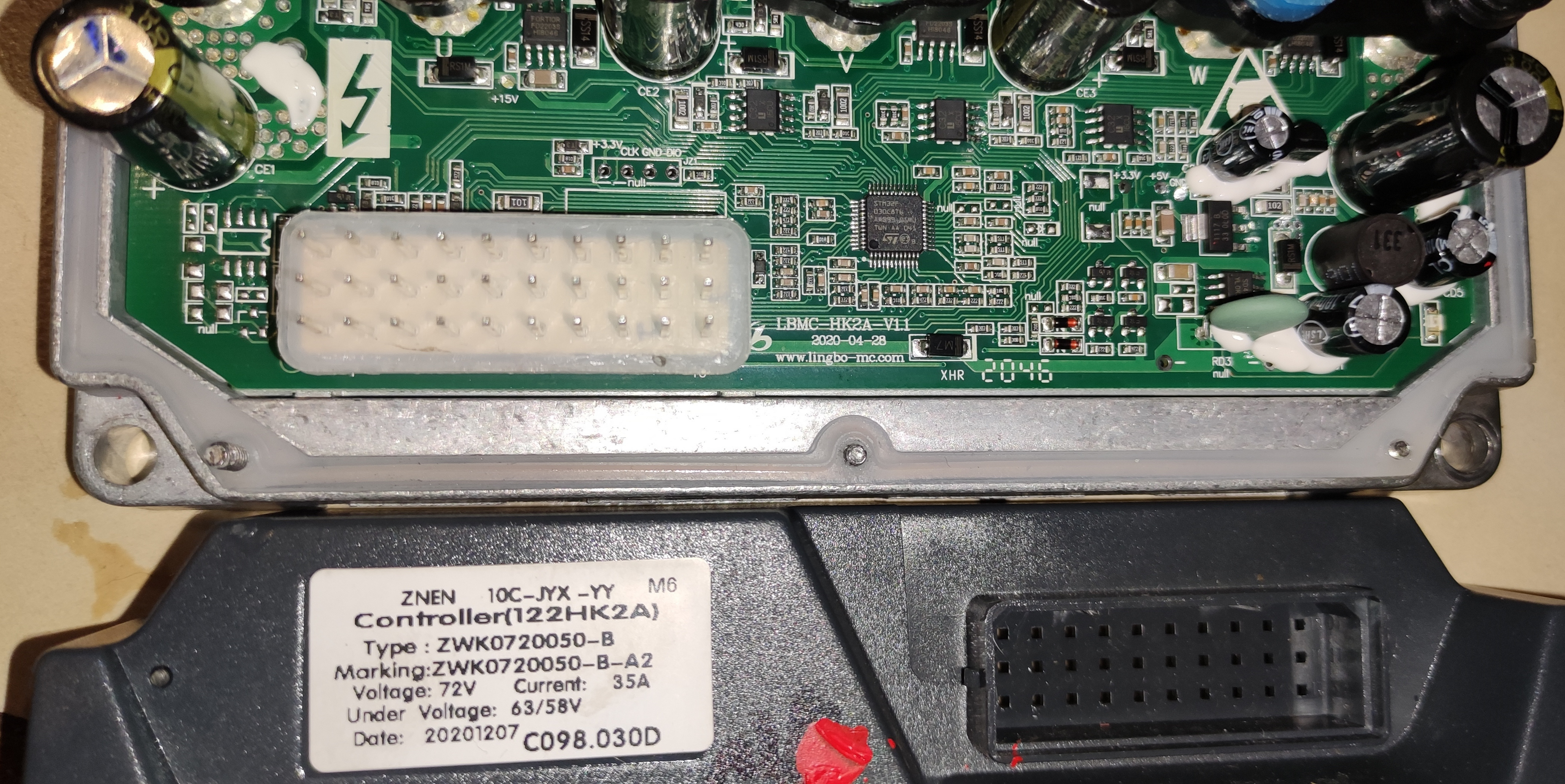 Ich habe mir zum Testen einen gebrauchten 72v Controller eines luxon3000 rollers besorgt, der jedoch anscheinend auf eine andere Wicklungszahl oder ähnliches eingestellt ist, denn mit dem Controller zieht er viel mehr Strom, coggt, läuft sehr schlecht und drosselt nach wenigen minuten wegen überhitzung. Vorteile dieses controllers: Er kommt mit dem Akku klar und hat rekuperation.