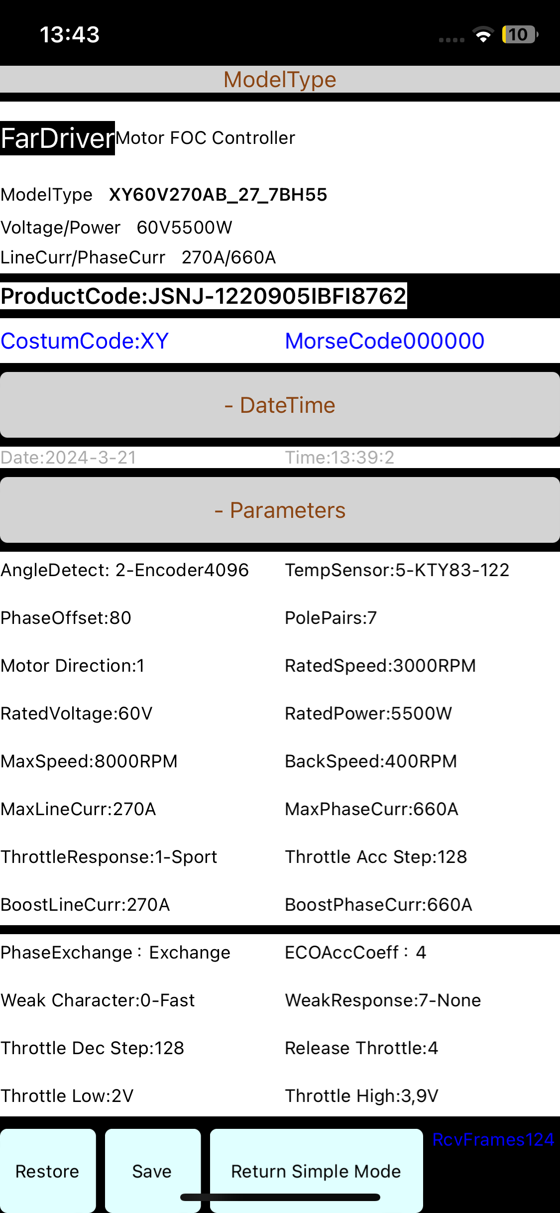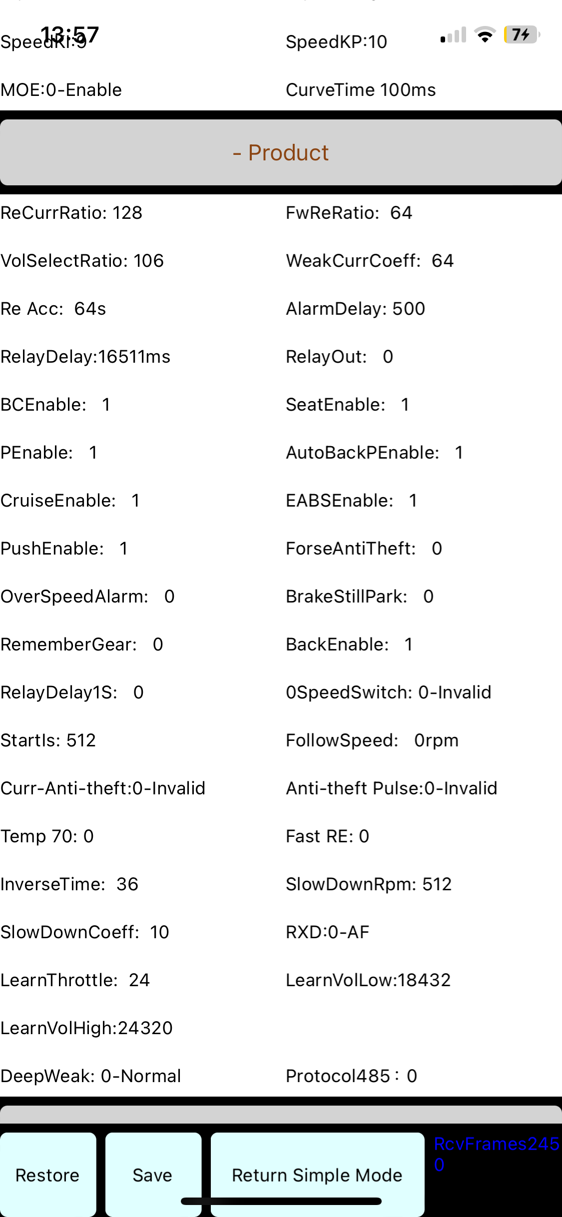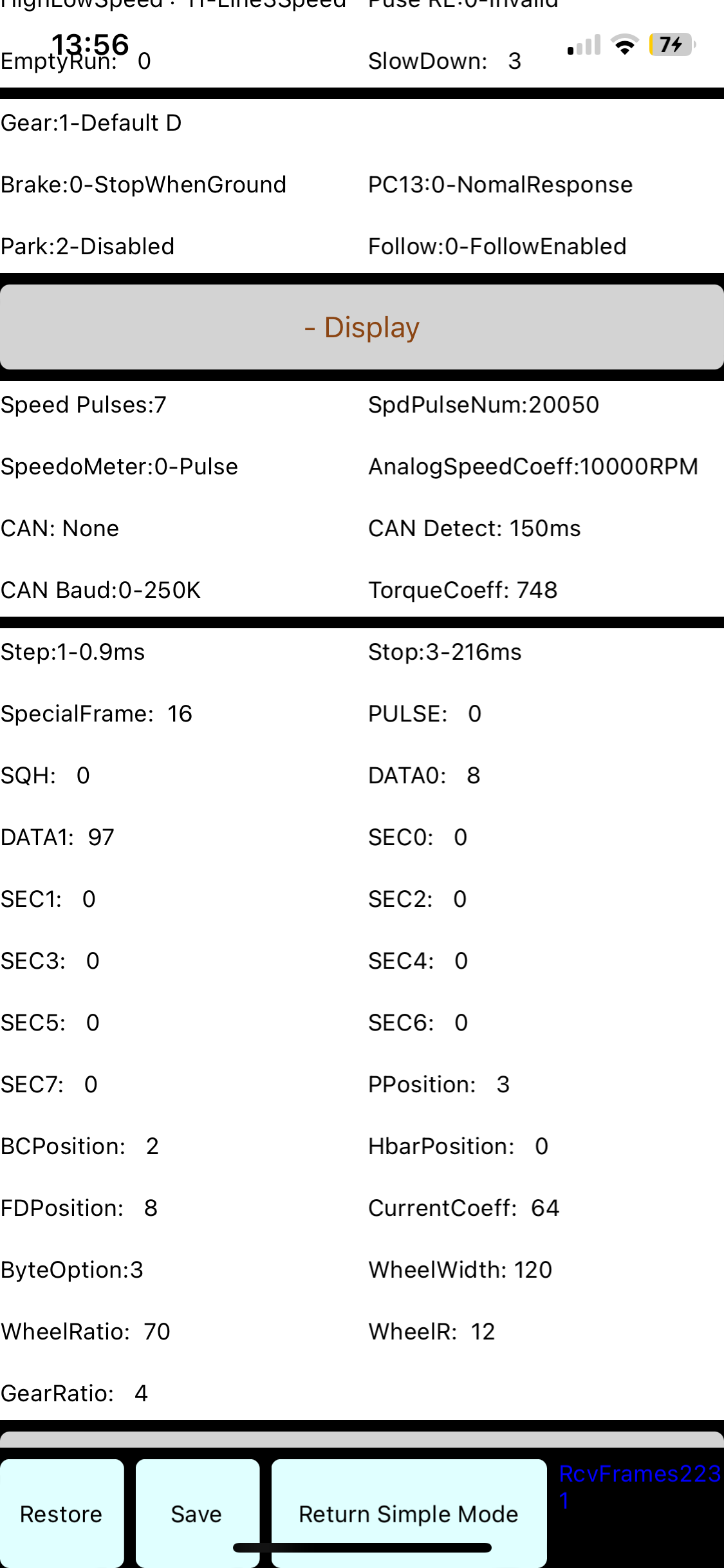 Ich bin aktuell dabei mir einen Elektro Außenbordmotor zu bauen und habe einen FarDriver ND72270 Controller und Qs165 Motor (Encoder). Ich hatte den Controller mit Motor schon ein mal laufen (nach zahlreichen Versuchen der Einrichtung des Controllers da die Autolearn Funktion nicht richtig funktionierte) aber hatte das Problem, dass der Motor nach Gas wegnahme nicht aufhörte zu drehen weshalb ich den Controller via App (in Hoffnung es funktioniert danach richtig mit der Gasabnahme) zurückgesetzt habe. Jetzt kriege ich den Controller leider nicht mehr Angelernt und er fängt höchstens an zu vibrieren oder sich mit >1 Umdrehung pro Minute zu drehen. Bitte um Hilfe.