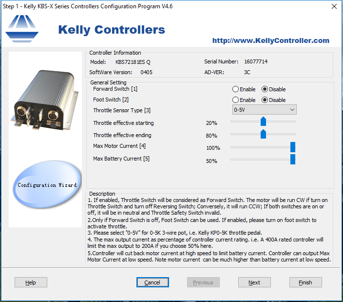 Kelly KBS72181E,110A,24-72V Brushless DC Controller