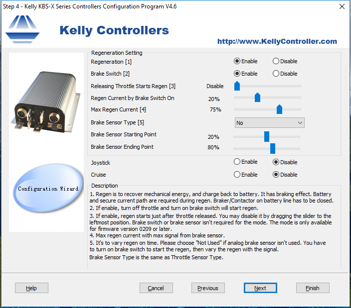 Am Kelly Controller habe ich den Max Regen Current von 75% auf 40% reduziert und am Cycle Analyst den max. Batterie Strom von 100A auf 150A erhöht (wobei das ja eh keinen Unterschied machen sollte, weil es durch den Controller begrenzt wird).