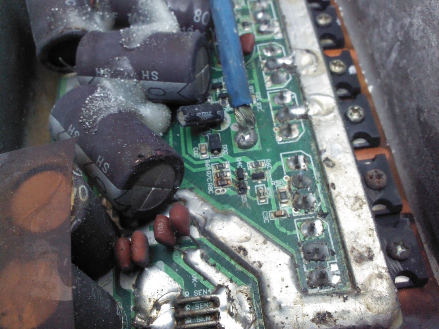 Auf jeden Fall sind ein Paar Widerstände hin. Auf Bild 1 unten links gut zu sehen.