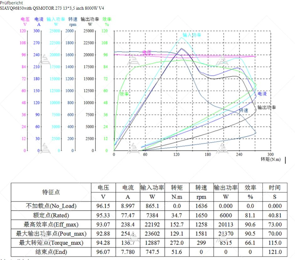 Es war ein QS 8kW Motor V4 in 96V. Bei 96V ist der Batteriestrom kleiner als bei 72V. Ja, was für wenige Sekunden so möglich ist.