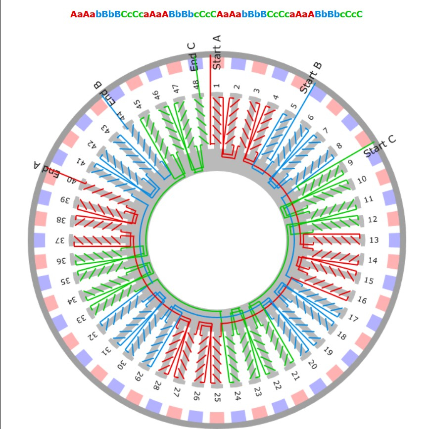 Dann wären immer vier benachbarte Wicklungen von der gleichen Phase durchströmt