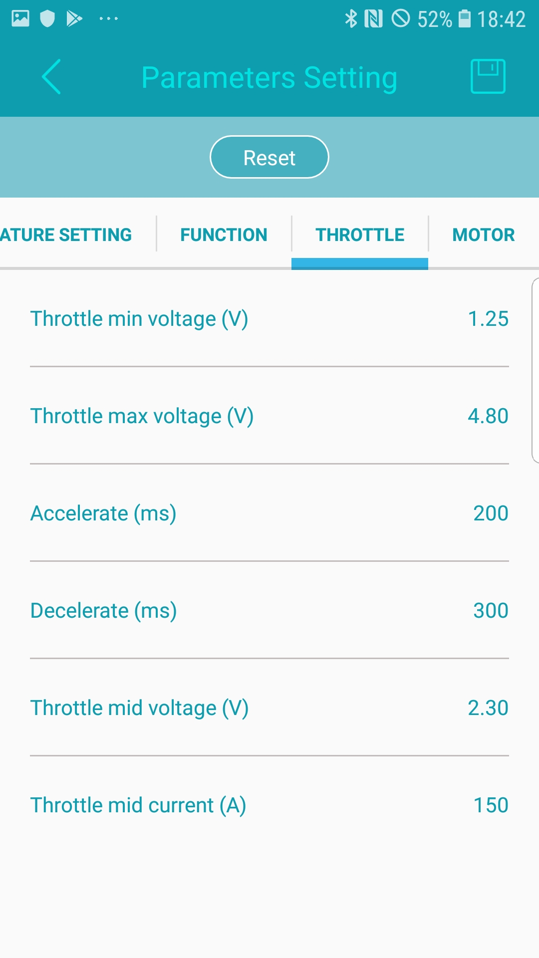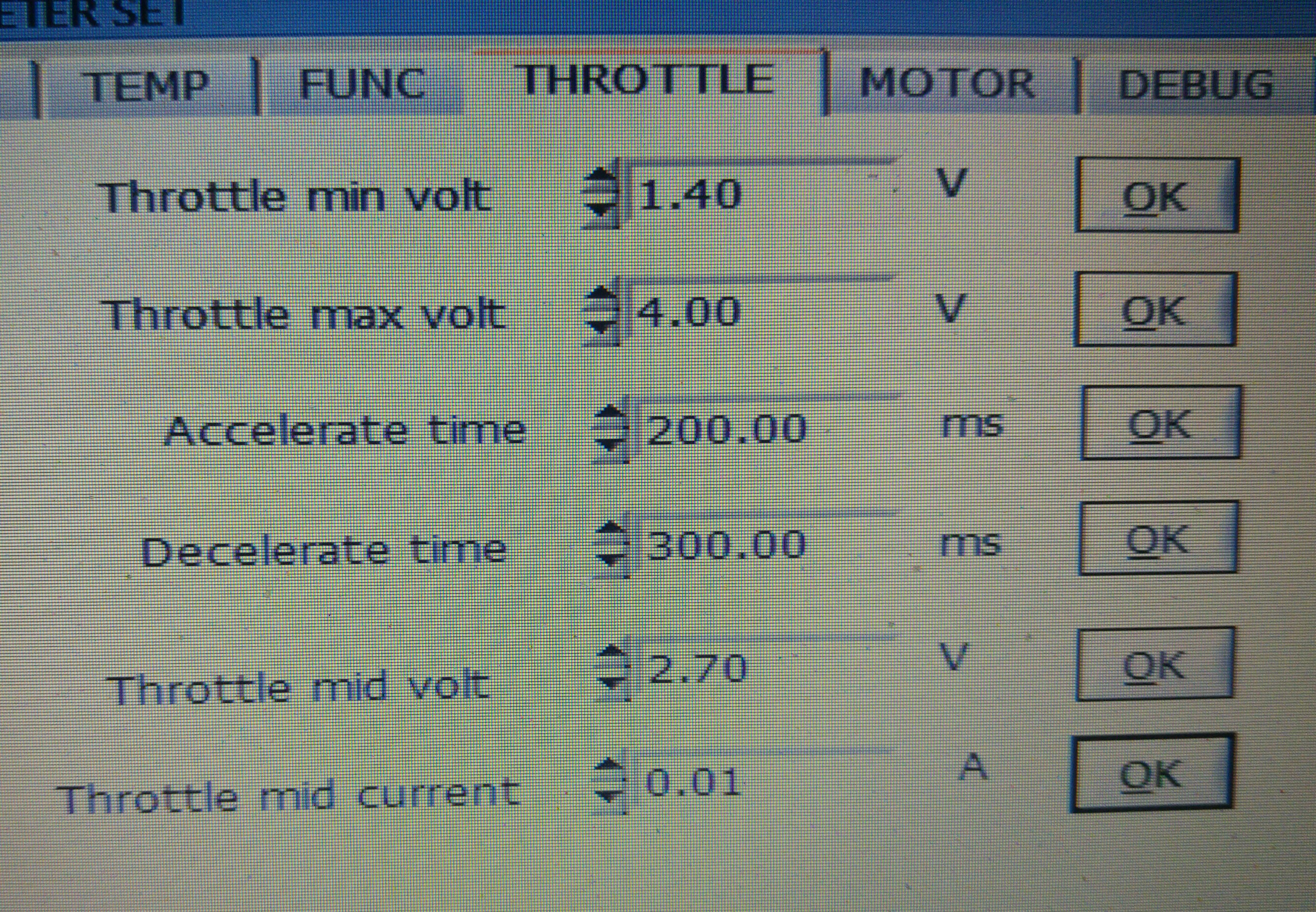 Mid. Current sollte relativ hoch sein, dann zieht der Motor besse unten raus. So wie der eingestellt ist, sollte sich das merkwürdig fahren...