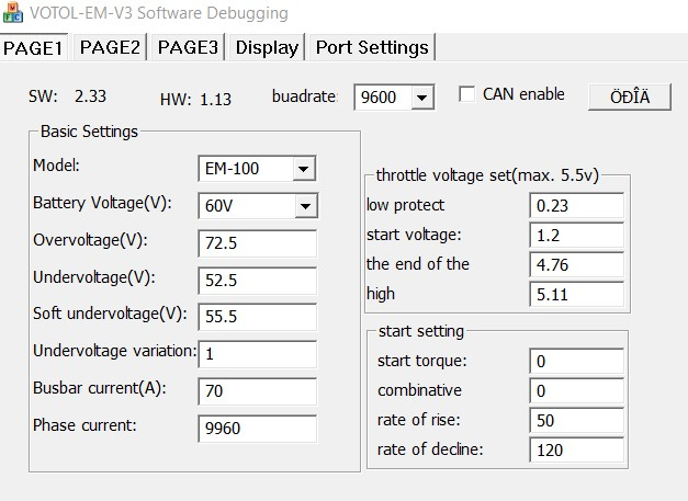PS: ein paar wenige Angaben zu Parametereinstellungen enthält die Anleitung. Mit deren Werten funktiniert der Controller wenigstens.