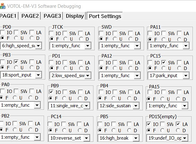 Er braucht dann kurz Controller-Masse auf das P-Kabel um in den Run-Modus umzuschalten (dazu muss gemäß Anleitung der Eingang "park modus" im SW = switch-Modus eingestellt sein, bei mir ist das PC15 im Menü "Port Settings".